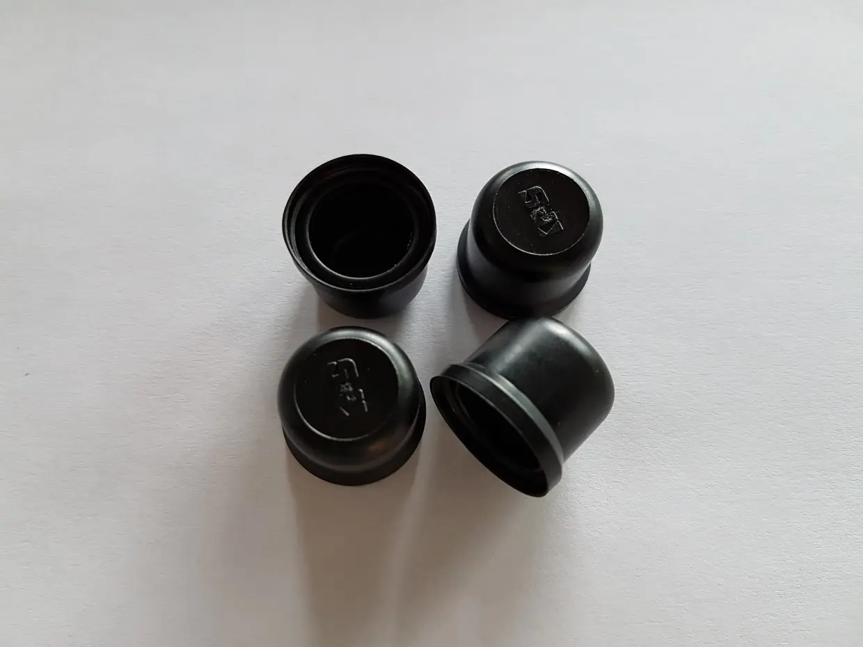 Ronde, zwart kunststof afdekdoppen voor de bouten van een zwart kennelpaneel. Wordt geleverd als set van 4 afdekdopjes.