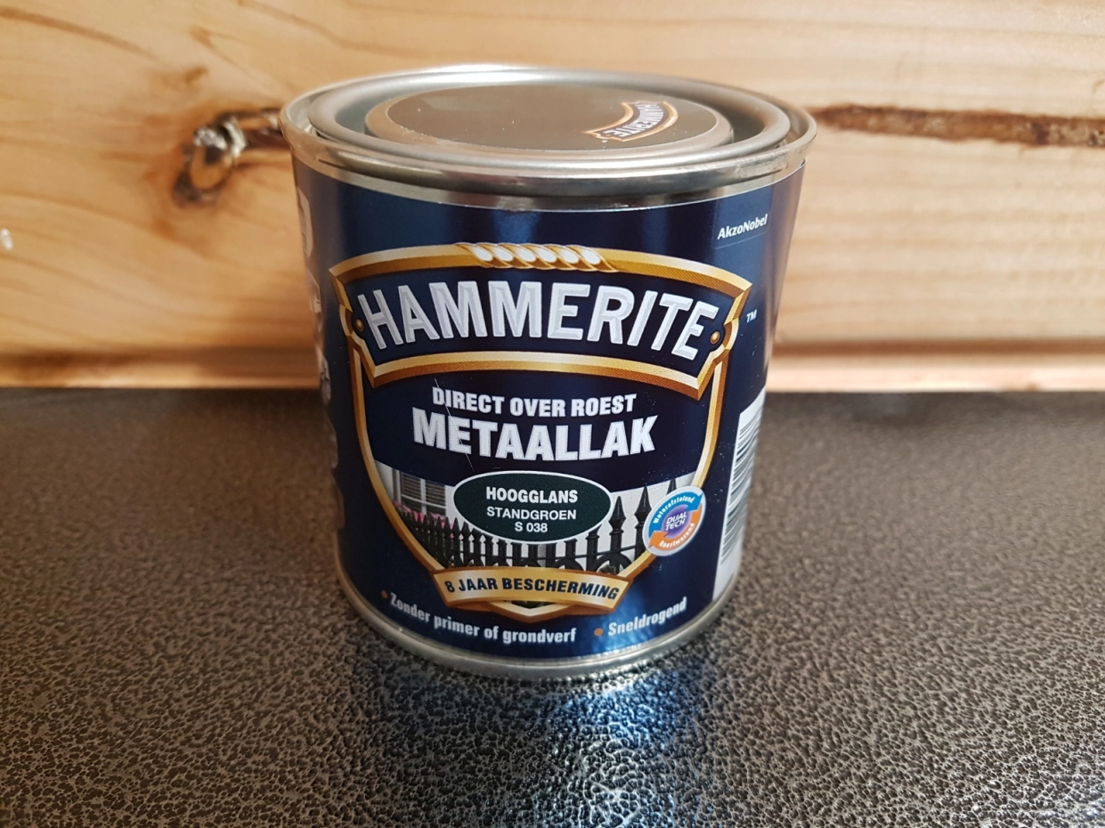 Hammerite metaallak hoogglans standaardgroen is een decoratieve metaallak. De DUALTECH technologie biedt een dubbele bescherming door een waterafstotende én roestwerende werking. Geschikt voor alle soorten metaal. - Direct over roest zonder primer of grondverf. - 8 jaar roest bescherming. - Stopt het roestproces. - Waterafstotend - Weersbestendig. - Sneldrogend. Met gratis kwastje!