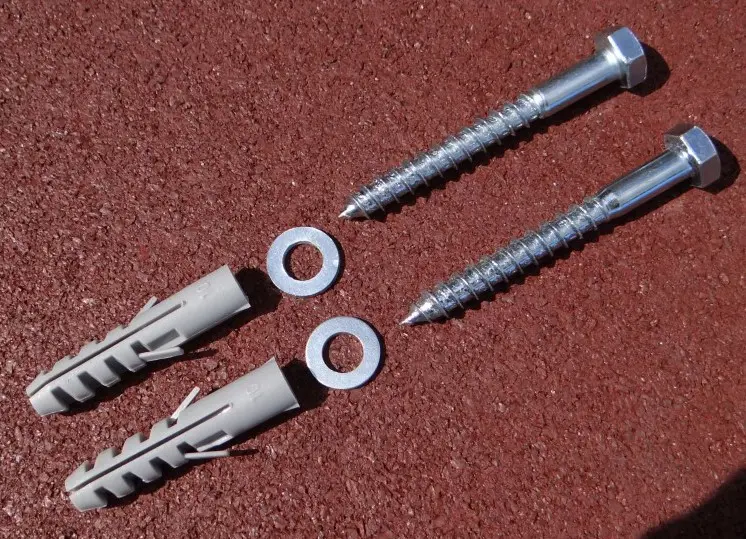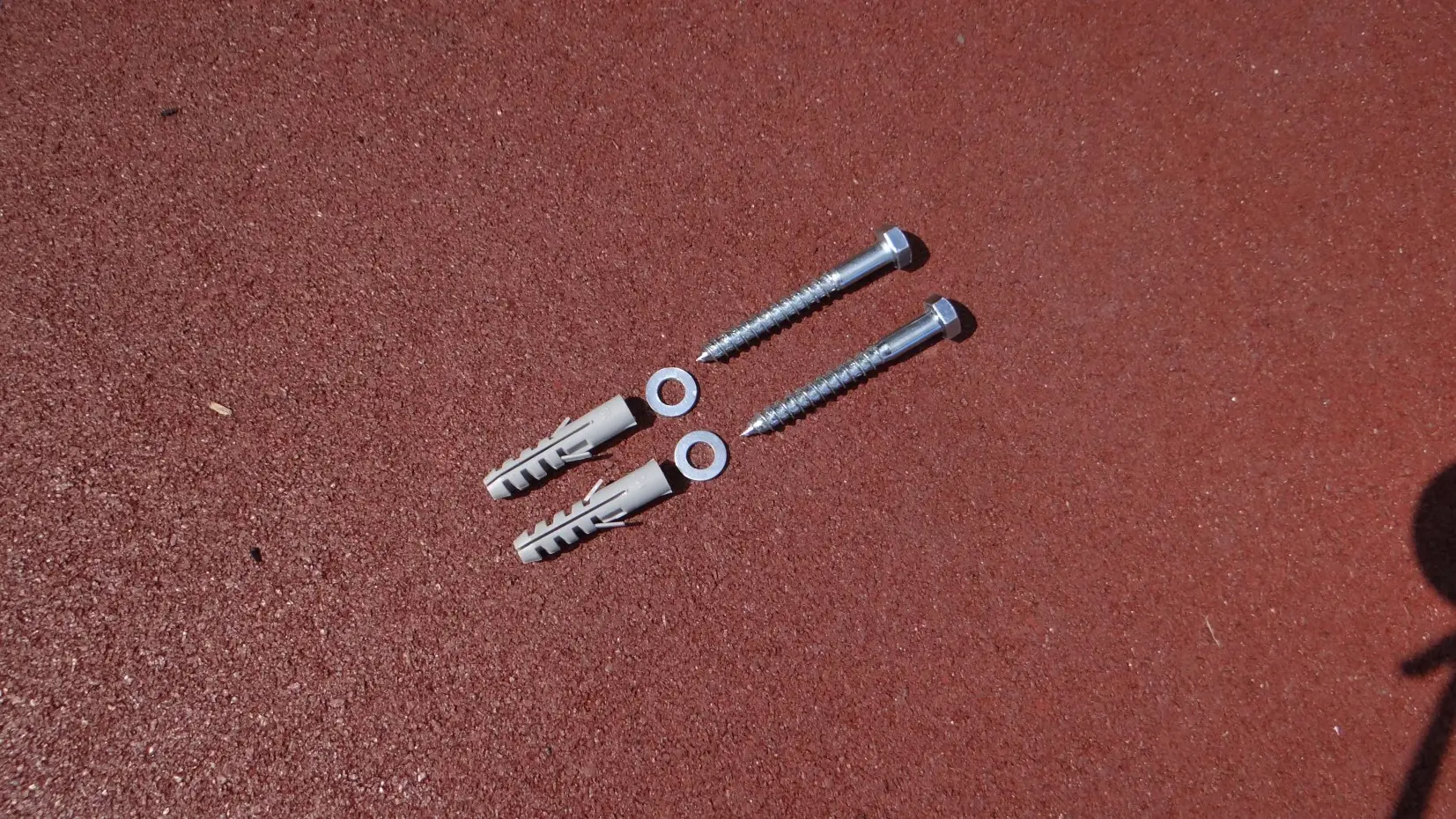 Muurbevestiging voor kennelpanelen, 2 houtdraadbouten van M8 x 70mm, 2 ringen en 2 pluggen. Geschikt om één kennelpaneel vast te zetten tegen de muur.