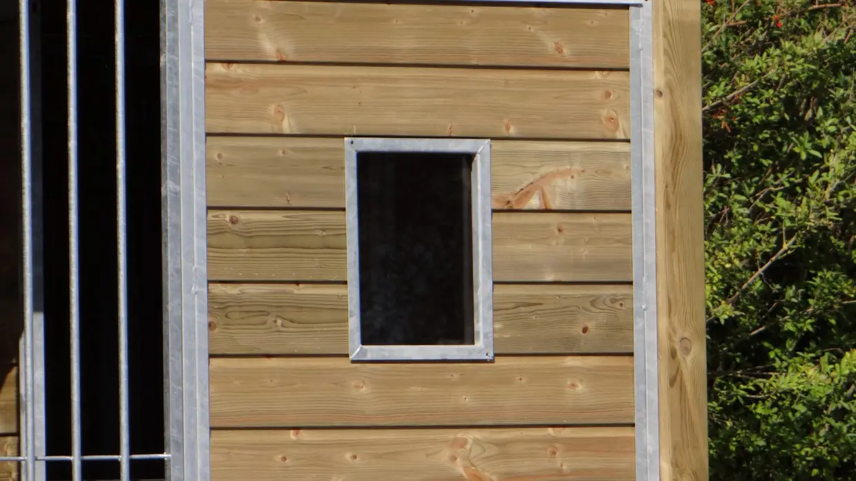 Een kennelpaneel met hout kunt u gemakkelijk voorzien van een raampje. Zo komt er wat extra licht in een donker deel van de hondenkennel. Het raampje wordt geleverd als een verzinkt stalen frame met een buitenwerkse afmeting van ca. 28x42cm (BxH). In het frame zit een plexiglasplaatje van 4mm dik. Aan de binnenkant van de kennel kan het plexiglas er vanaf de bovenkant in- en uitgeschoven worden.