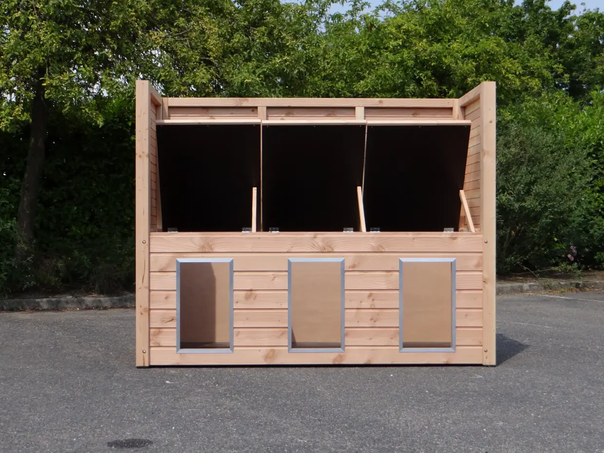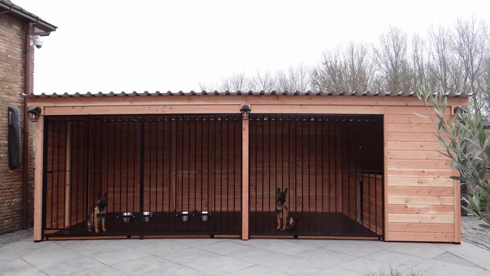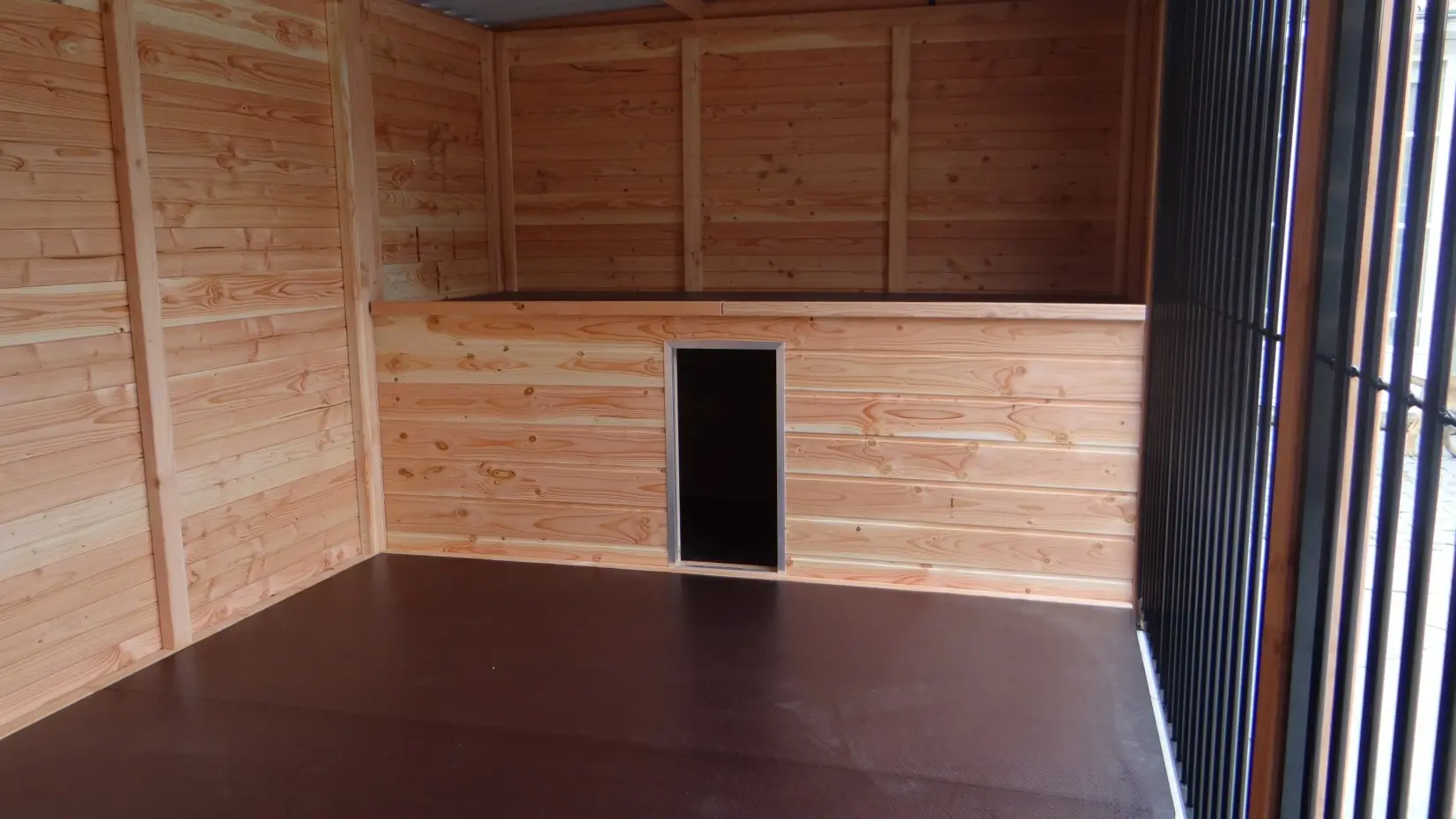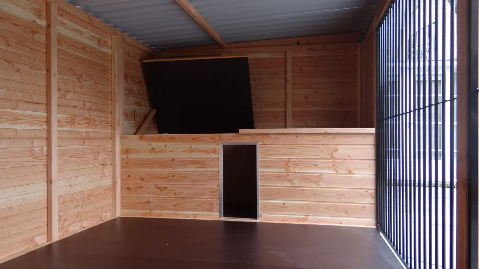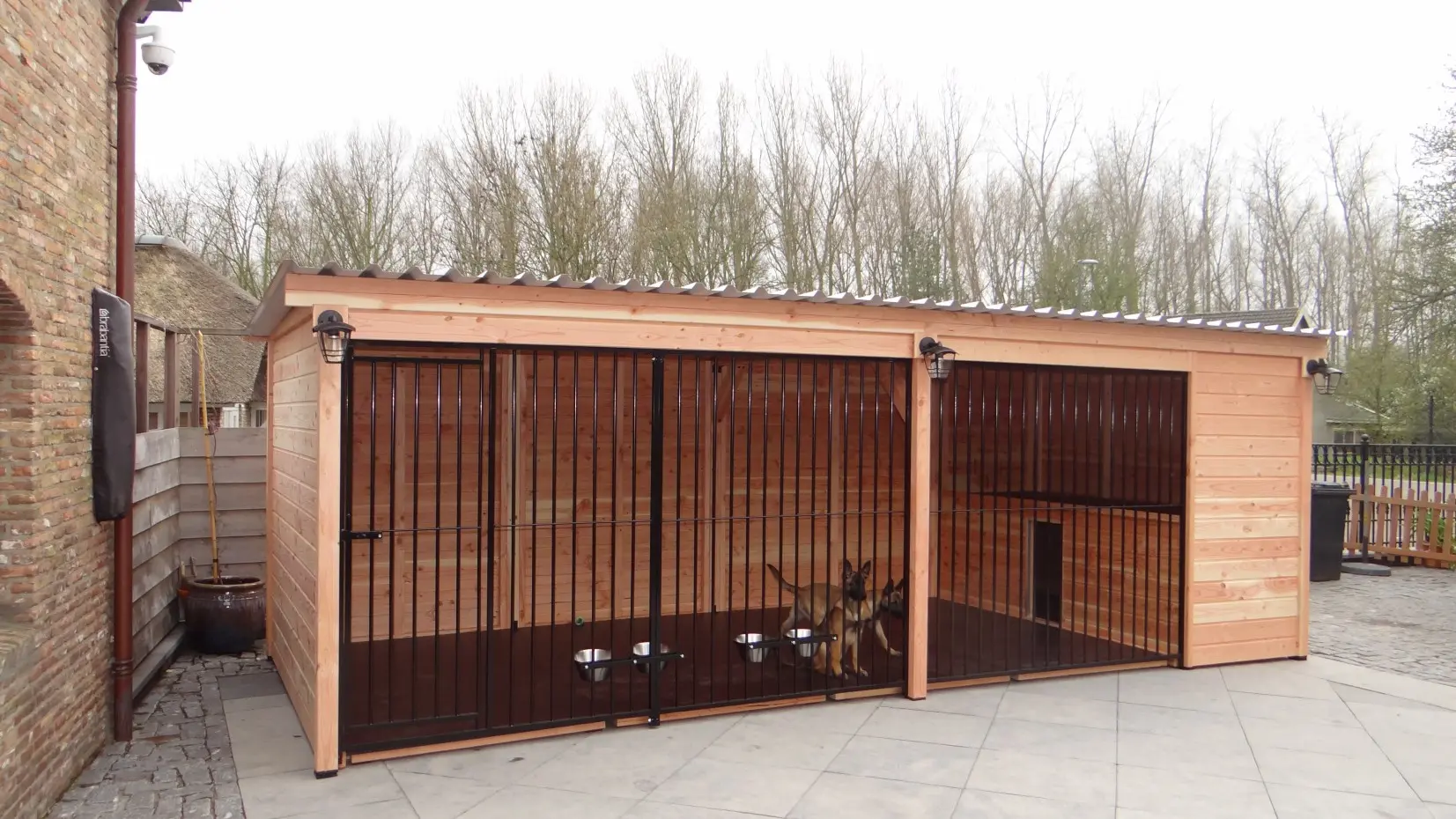 - De houten wanden zorgen voor beschutting tegen wind, neerslag en zon. Hierdoor ontstaat een beter klimaat in de kennel, het hele jaar door.