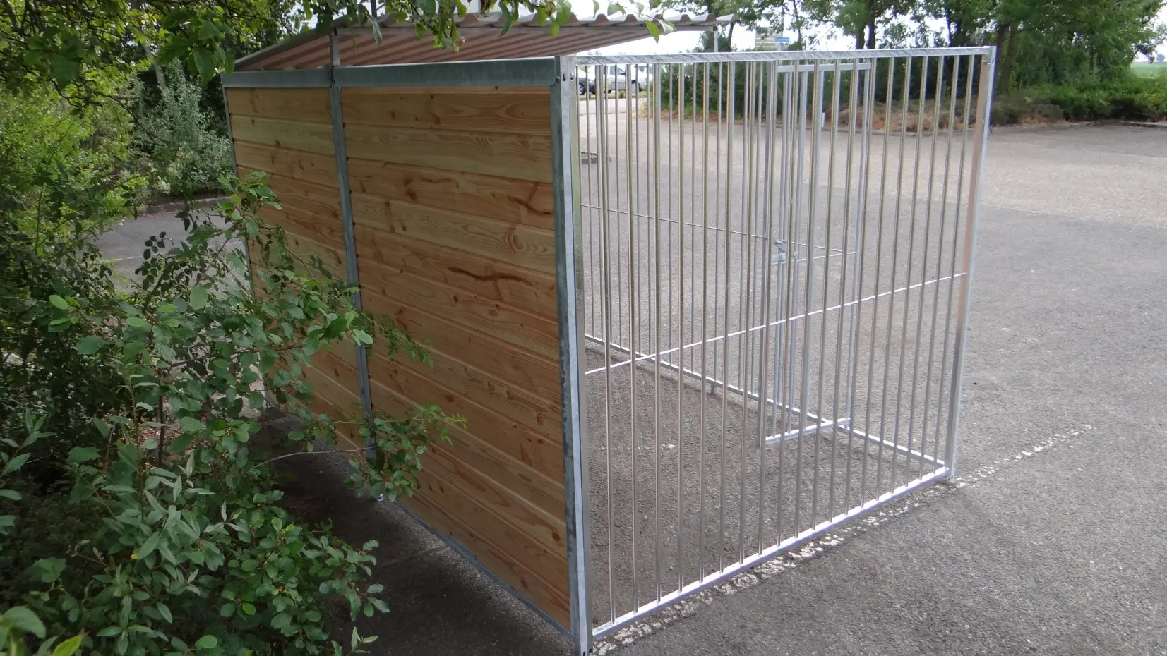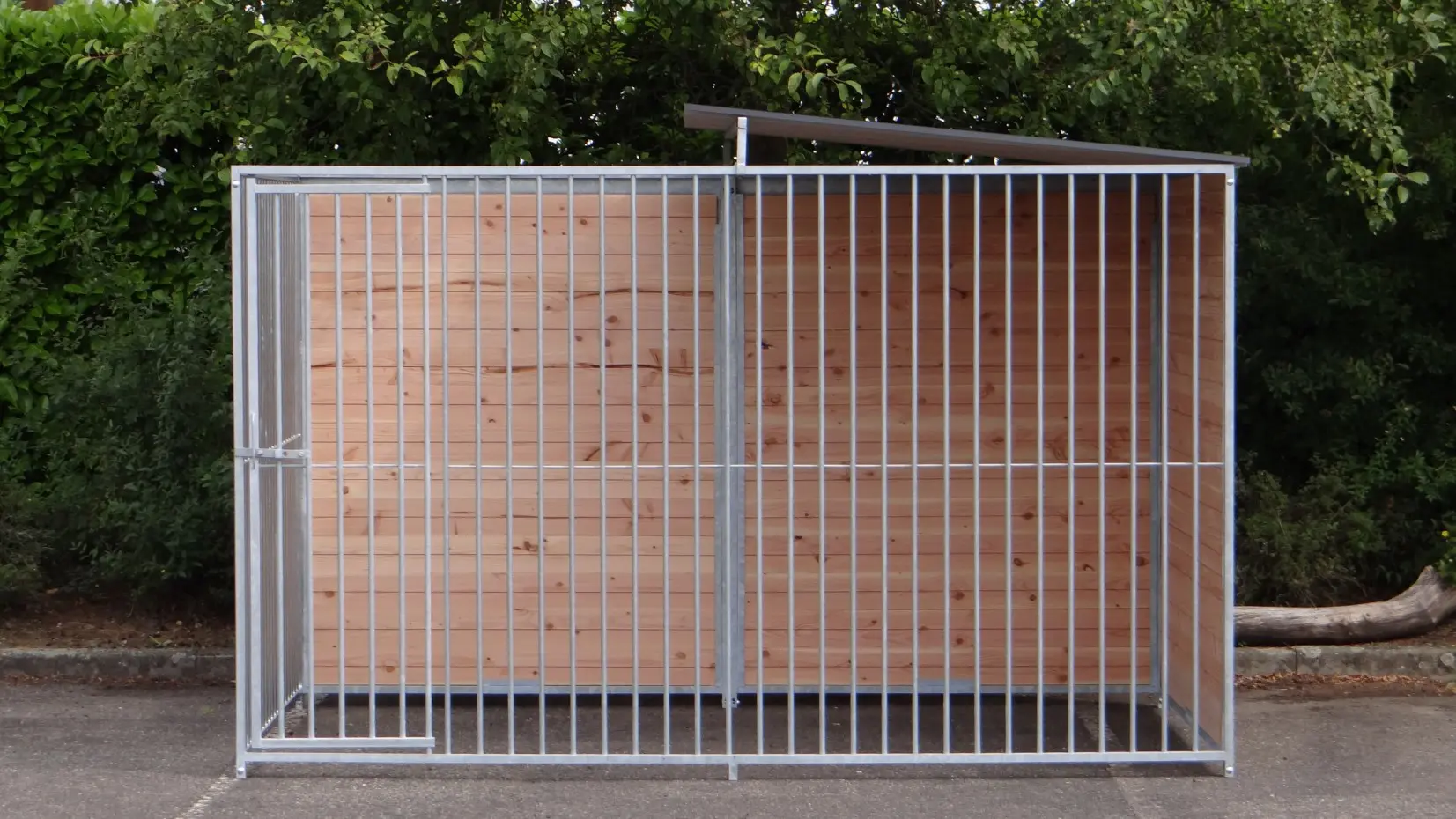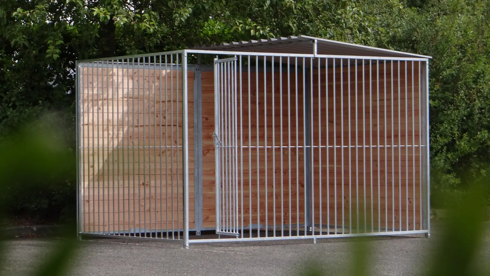 De kennel van 3x2m is voorzien van 2 dichte Douglashouten wanden en 2 traliepanelen waarvan 1 met deuropening voor optimale toegankelijkheid. Hierdoor ontstaat een fijne beschutte hoek waar uw hond achter kan liggen, of waar zijn nachthok kan staan.