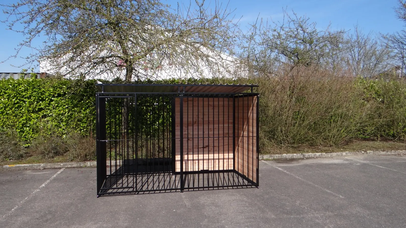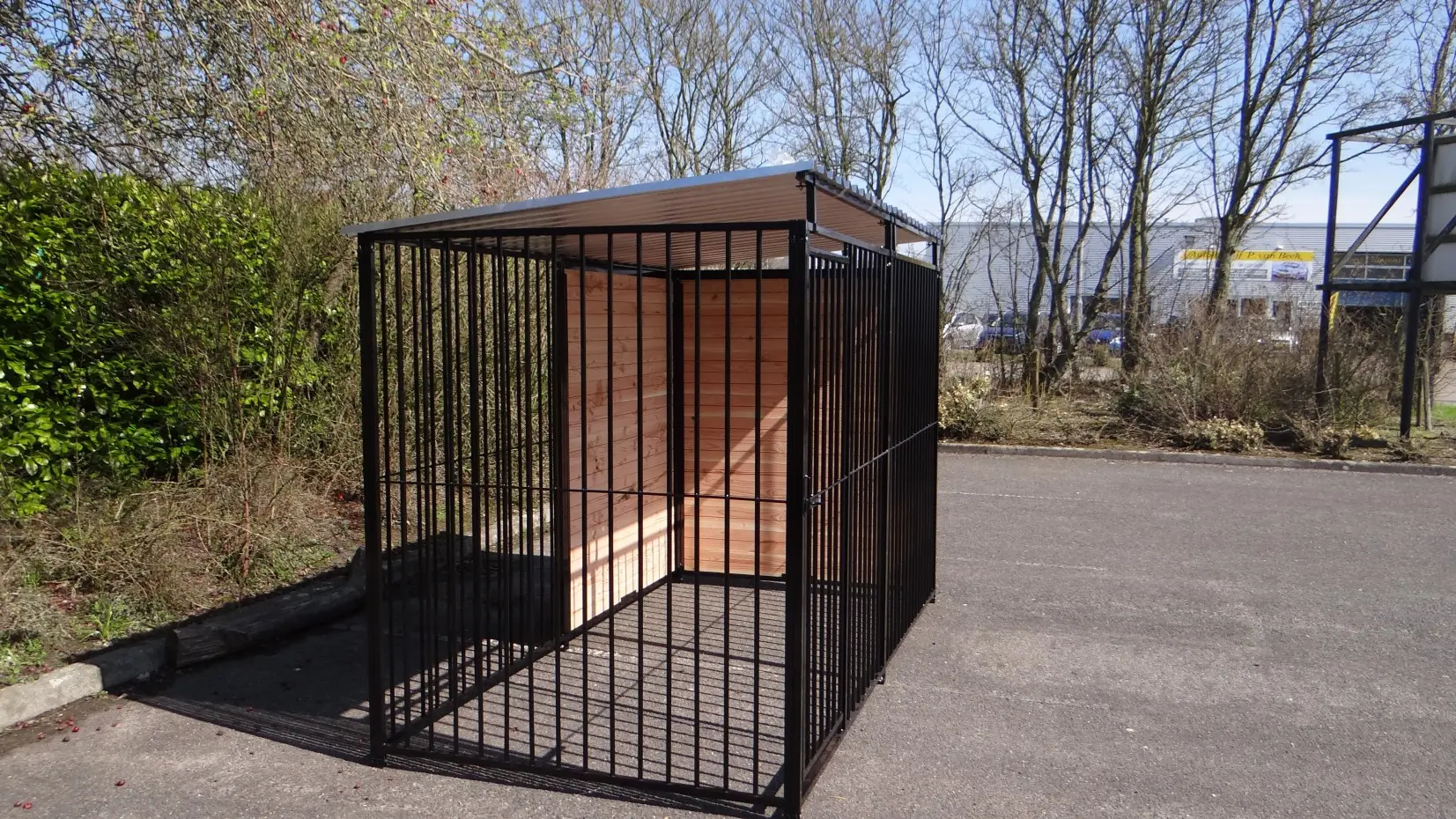 Deze stevige hondenkennel is een optimaal buitenverblijf voor uw hond. De kennel van 3x1.5m is voorzien van een dak, 2 dichte Douglashouten wanden en een kennelpaneel met deuropening voor optimale toegankelijkheid. Deze kennel is normaal gesproken direct uit voorraad leverbaar!