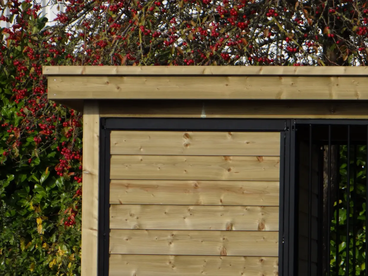 - 18mm dikke rabatdelen van geïmpregneerd vurenhout, die niet meer behandeld hoeven te worden