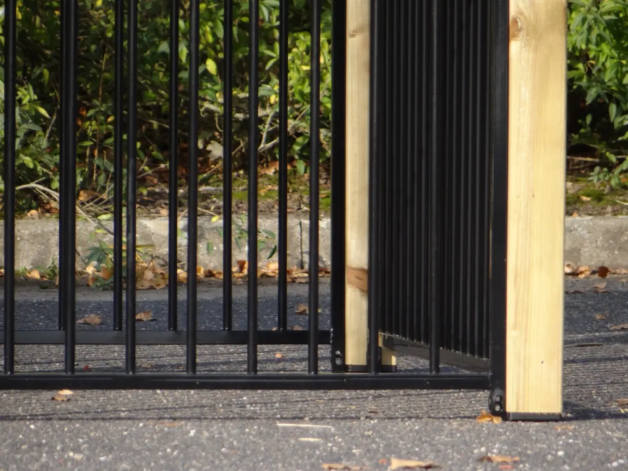 - De houten staanders van de kennel (88x88mm) zijn voorzien van kunststof voetjes