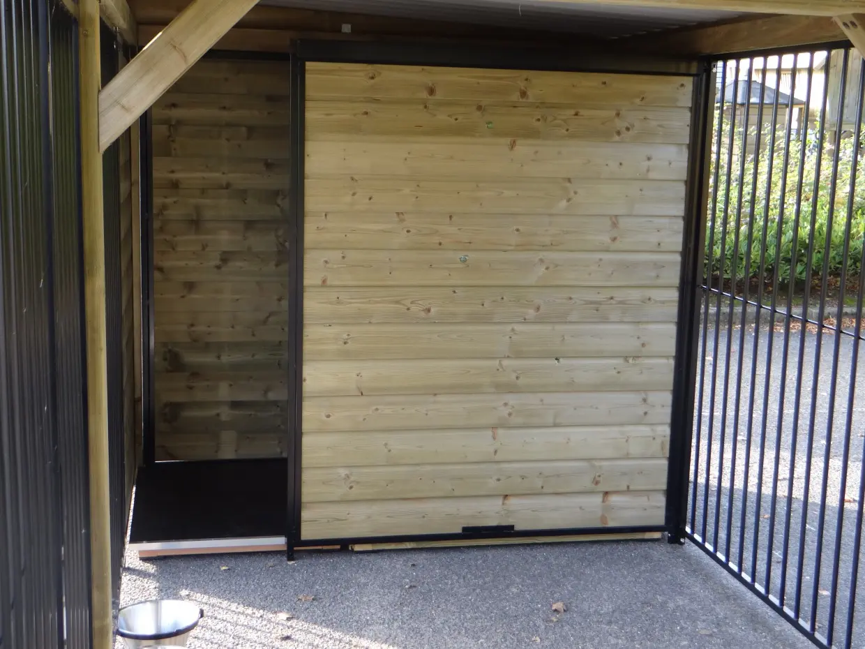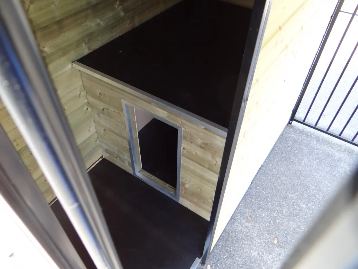 - De kenneldeur zit standaard aan de linkerkant, draait naar binnen toe open en heeft de mogelijkheid voor een hangslot