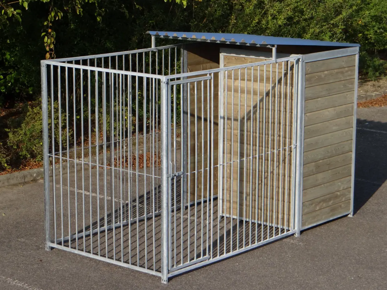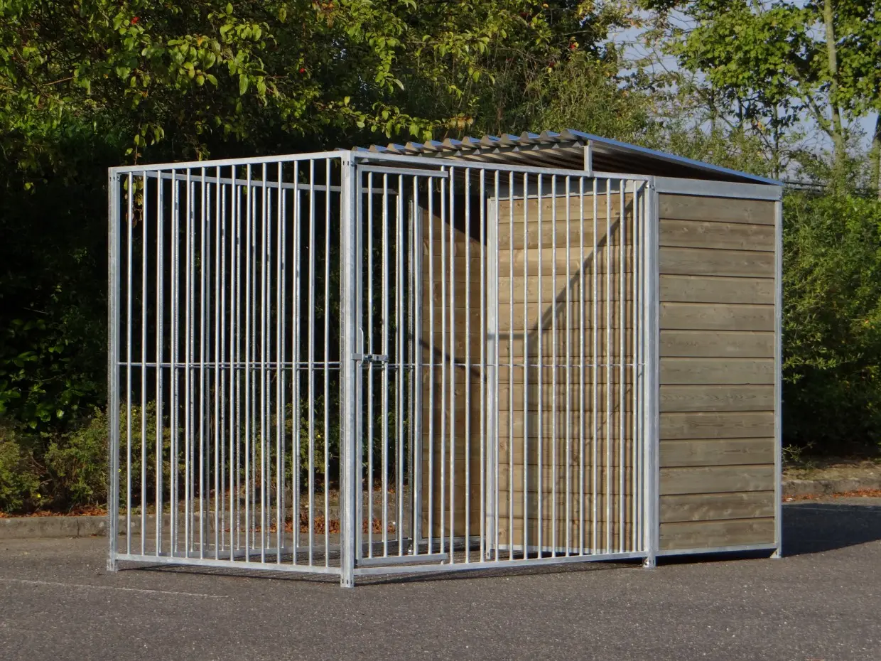 Deze stevige, gegalvaniseerde hondenkennel is een optimaal buitenverblijf voor uw hond. De kennel is gedeeltelijk voorzien van een dak en 3 dichte houten wanden, dit hout is van geïmpregneerd vuren. De hondenkennel is 3 x 1.5 meter en binnenin voorzien van een fijn tochtschot voor een beschutte plaats voor uw hond. Deze kennel is uit voorraad leverbaar....!