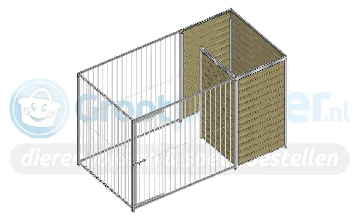 • De kenneldeur zit standaard aan de linkerkant, draait naar binnen toe open en heeft de mogelijkheid voor een hangslot