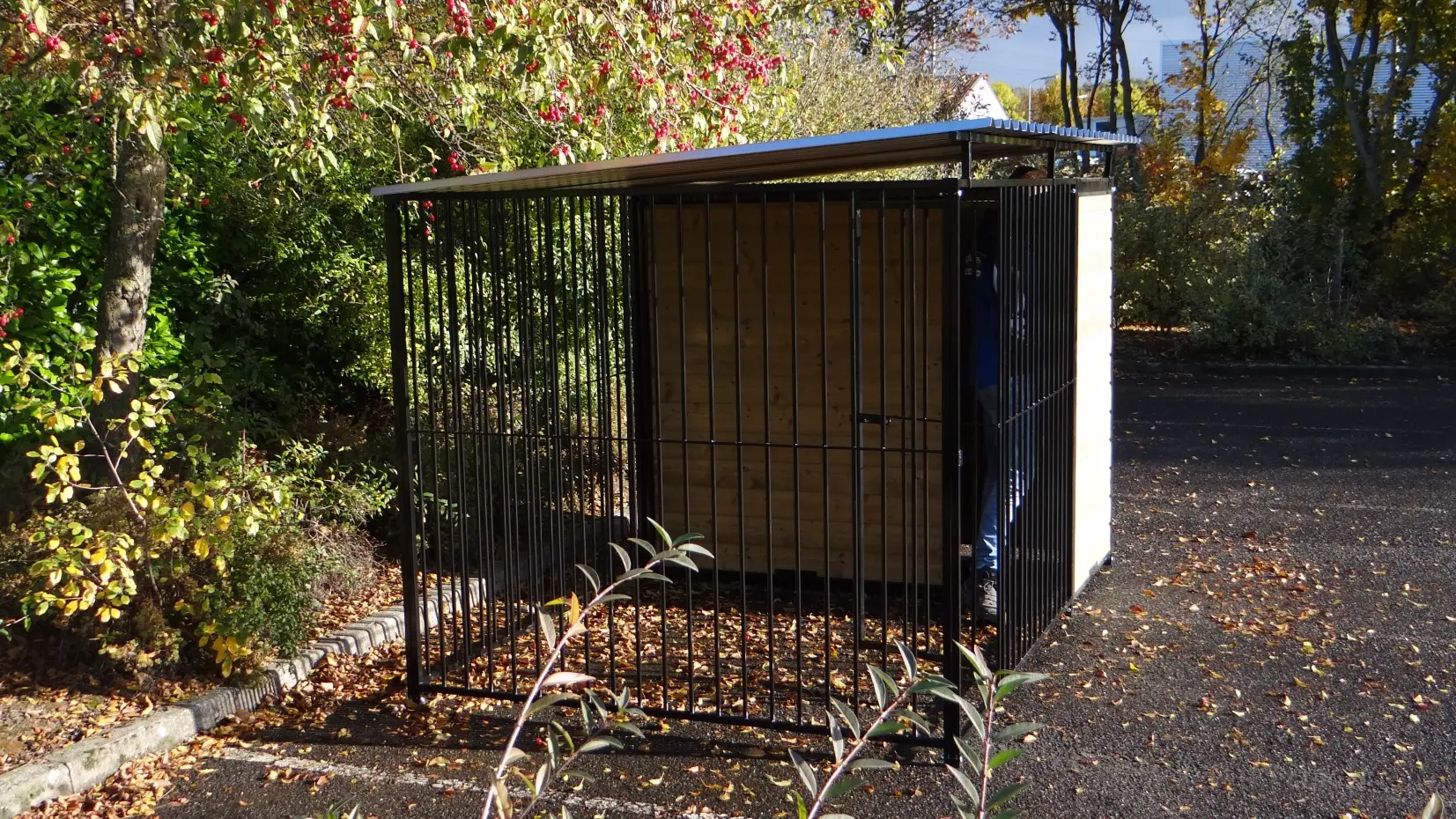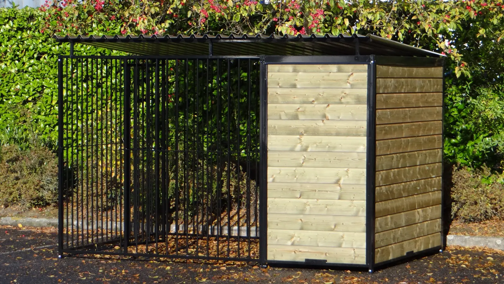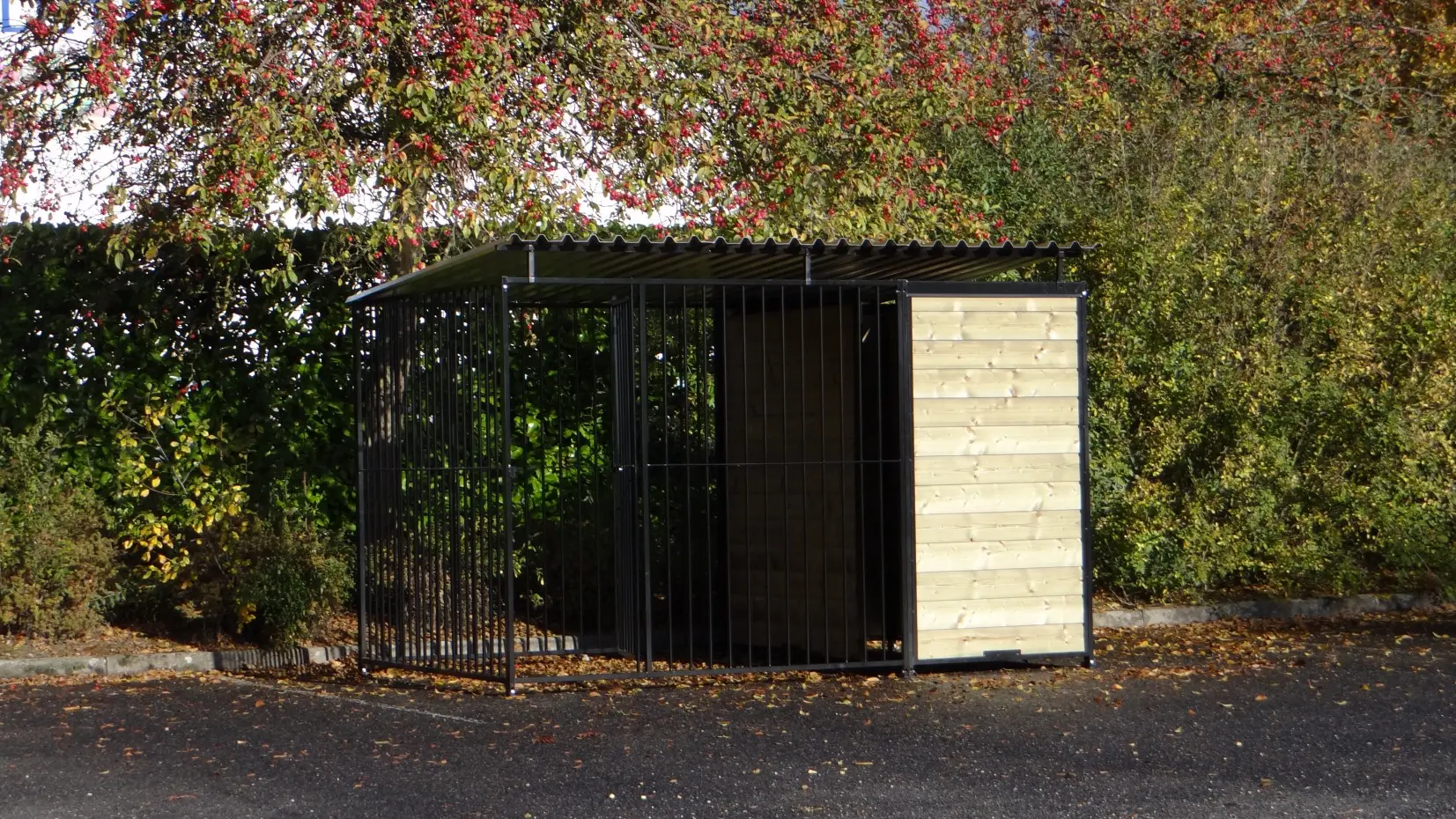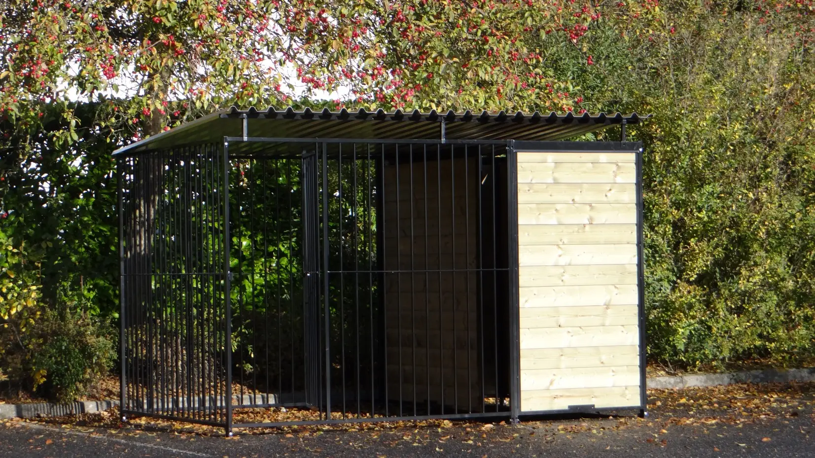 Stevige stalen hondenkennel, zwart gepoedercoat en voorzien van dak. Afmeting 3x2 meter en deels voorzien van dichte geïmpregneerd vurenhouten wanden. Het is overbodig om te zeggen dat dit een zeer chique kennel is. Ook weer met de kwaliteit van Grootplezier.nl. Achter het tochtschot is plaats voor een vlonder en/of nachthok. Optimaal dierenverblijf voor grote en kleine honden. Alle bevestigingsmaterialen en een opbouwbeschrijving worden meegeleverd.