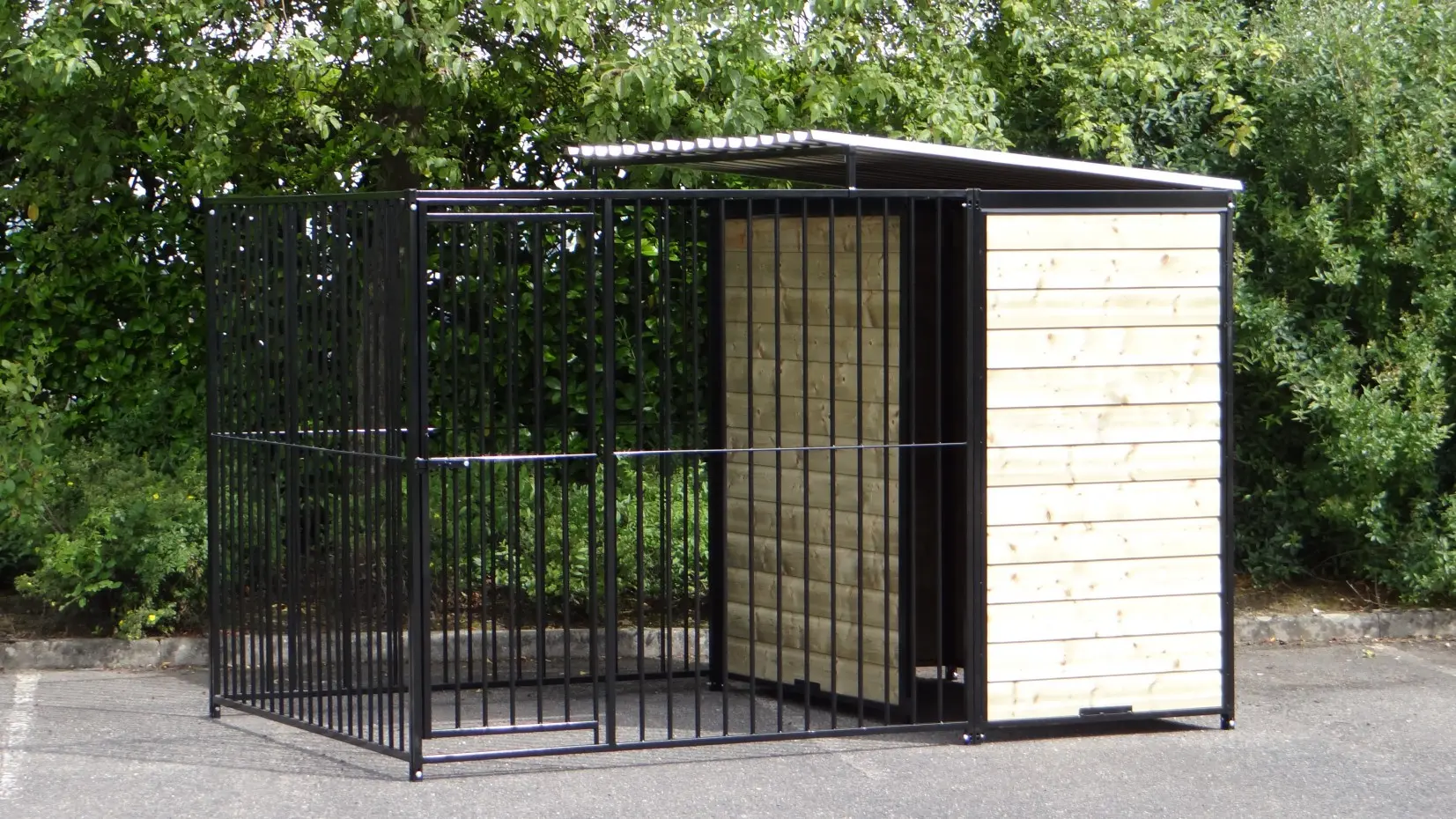 - Deze kennel beschikt over een tochtschot van 1,5 meter, zodat een fijne schuilhoek ontstaat voor uw hond(en).