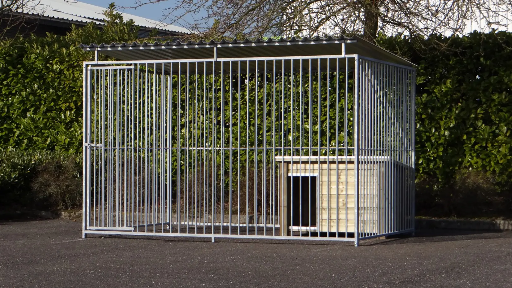 Hondenkennel FLINQ met dak en nachthok Ferro 3x2m