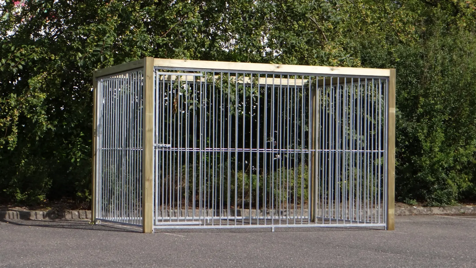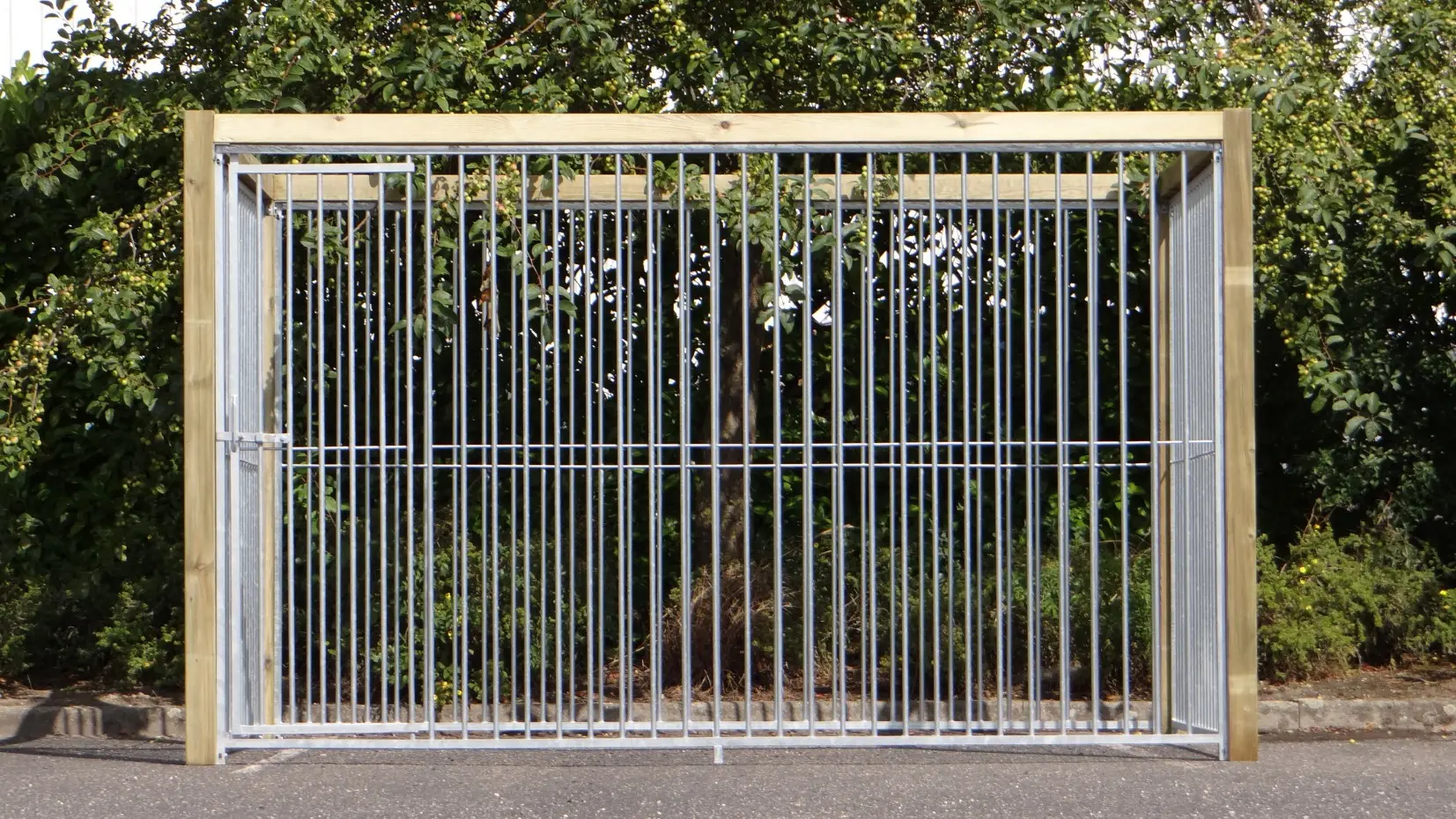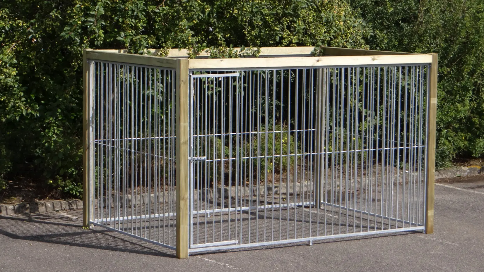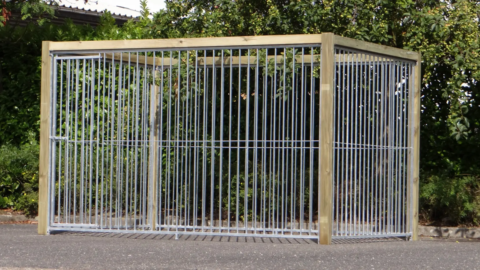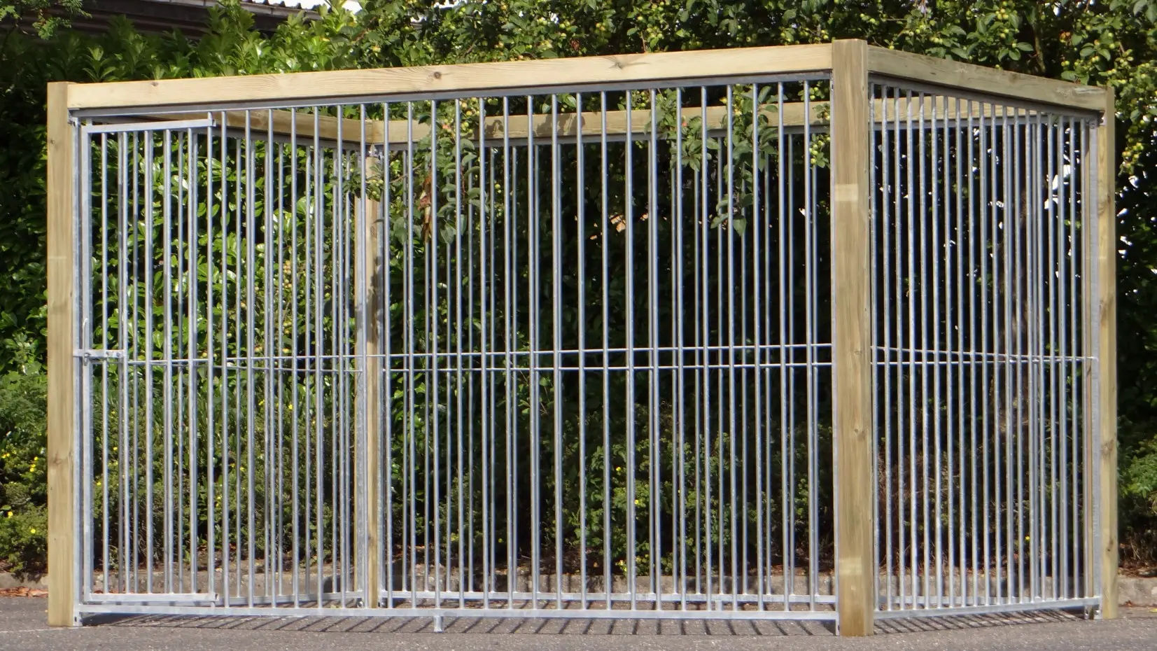Hondenkennel Flinq met houtkader is een zeer solide en mooie oplossing voor een hondenren. Het dikke geïmpregneerd vurenhouten kader zorgt voor een erg stoer uiterlijk, en maakt de kennel sterker dan ooit. Dit type is in vele maten beschikbaar. Ook staat het erg mooi in combinatie met de Luxe hondenhokken. Een kennel Flinq met houtkader is ook te verkrijgen met dak. Kijk in de 3D tool en schets zelf uw gewenste kennel.