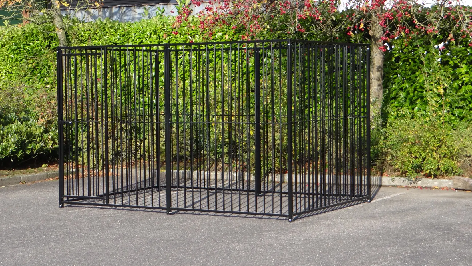 Deze stevige zwart gepoedercoate hondenkennel van 3 x 2m is een prachtig buitenverblijf voor uw hond! De honden kennel bestaat uit 4 kennelpanelen van 1.5 meter en 2 kennelpanelen van 2 meter. Bij deze kennel ontvangt u 2 hoekijzers voor vloerbevestiging om de panelen van 1.5m aan de vloer vast te zetten. Deze kennel is uit voorraad leverbaar...!