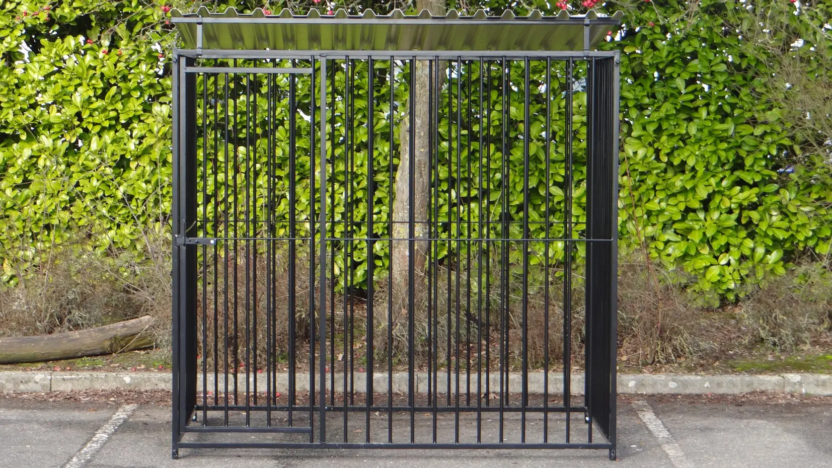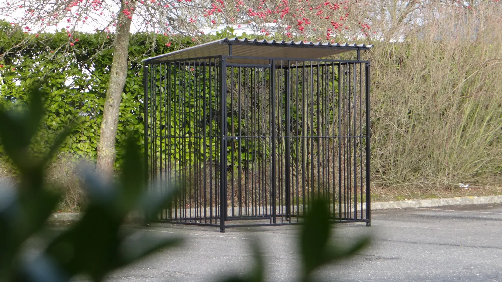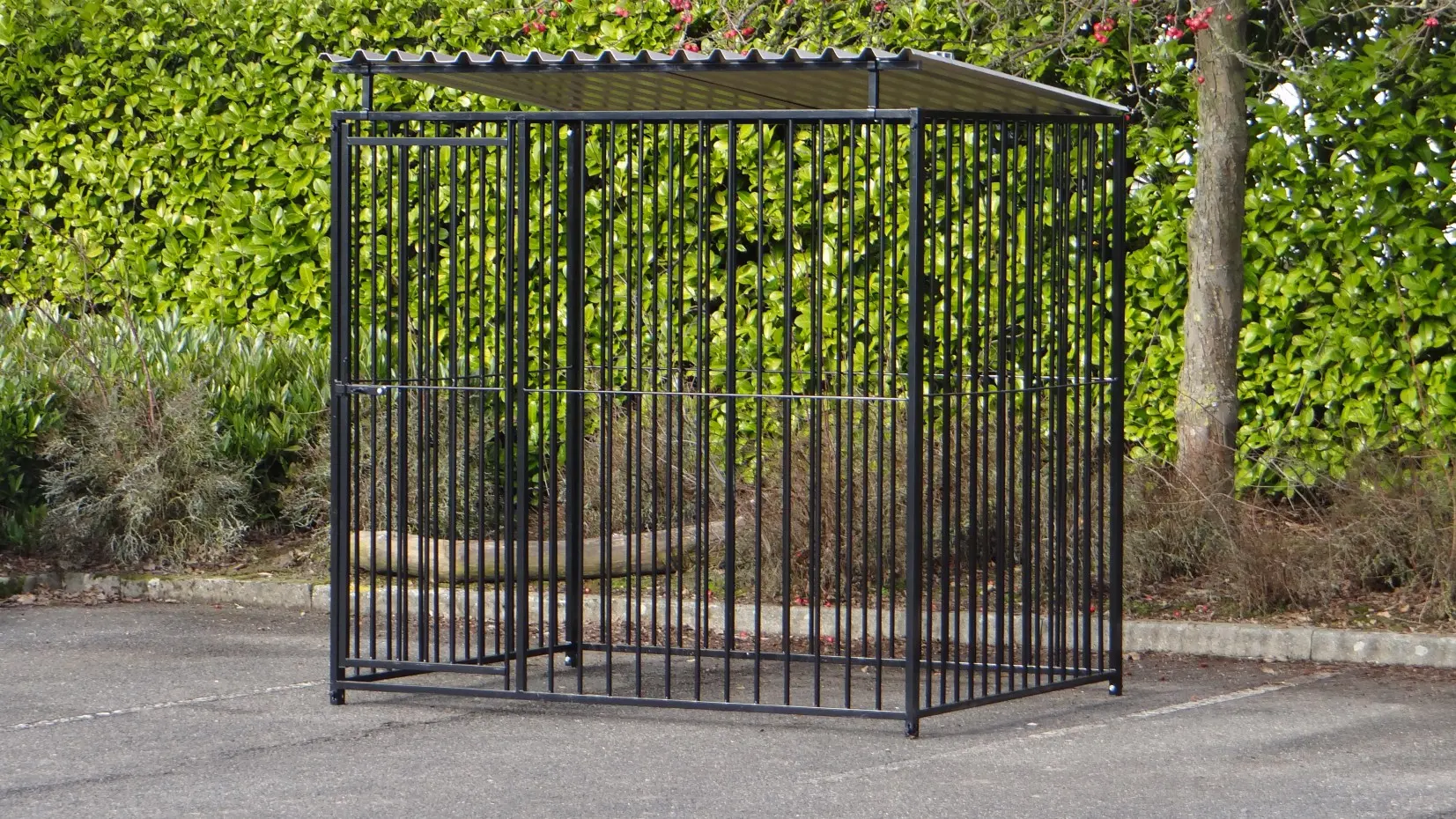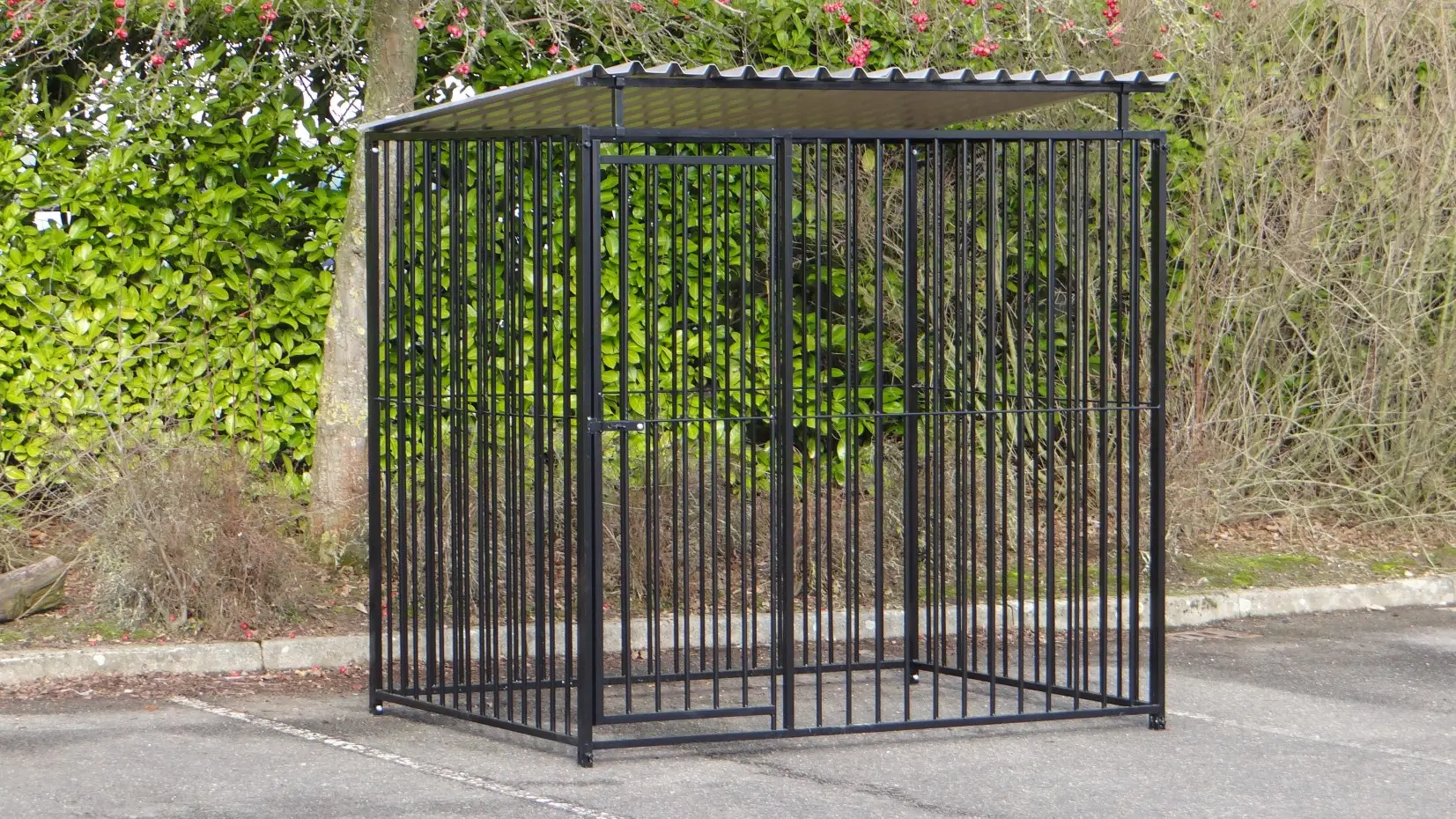Deze stevige zwart gepoedercoate hondenkennel van 2 x 1,5 m met dak is een prachtig buitenverblijf voor uw hond! De hondenkennel heeft een paneel met deuropening voor optimale toegankelijkheid en een dak tegen de regen.