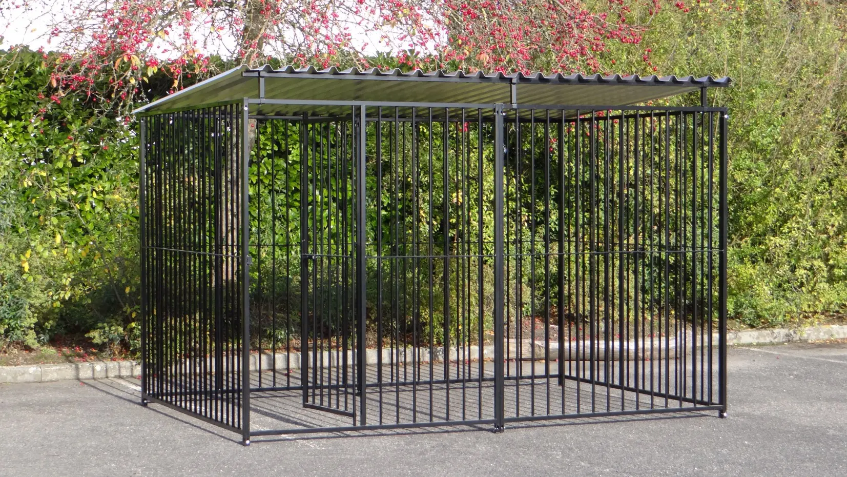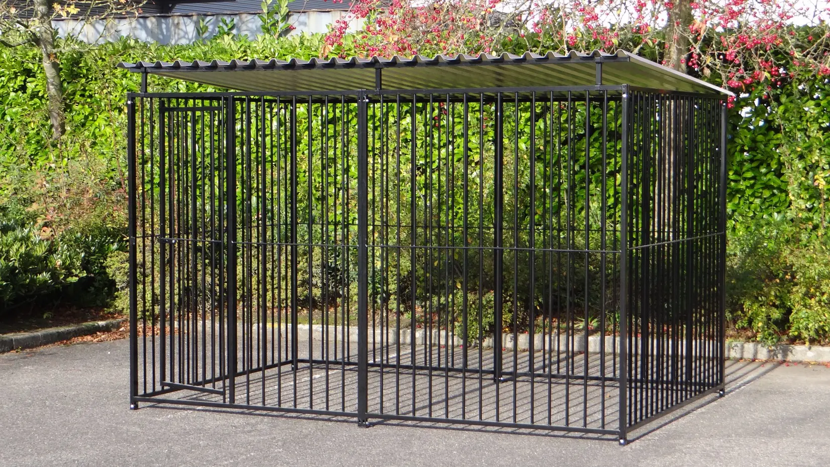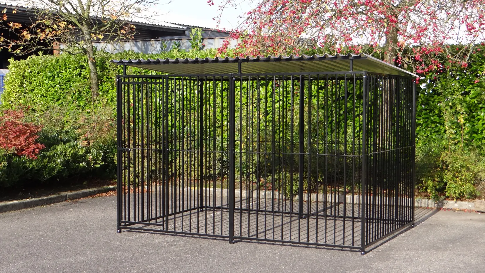 Deze zwart gepoedercoate hondenkennel van 3x2m met dak is een prachtig buitenverblijf voor uw hond! De honden kennel bestaat uit 4 kennel panelen van 1.5 meter en 2 kennelpanelen van 2 meter. Deze kennel is uit voorraad leverbaar...!