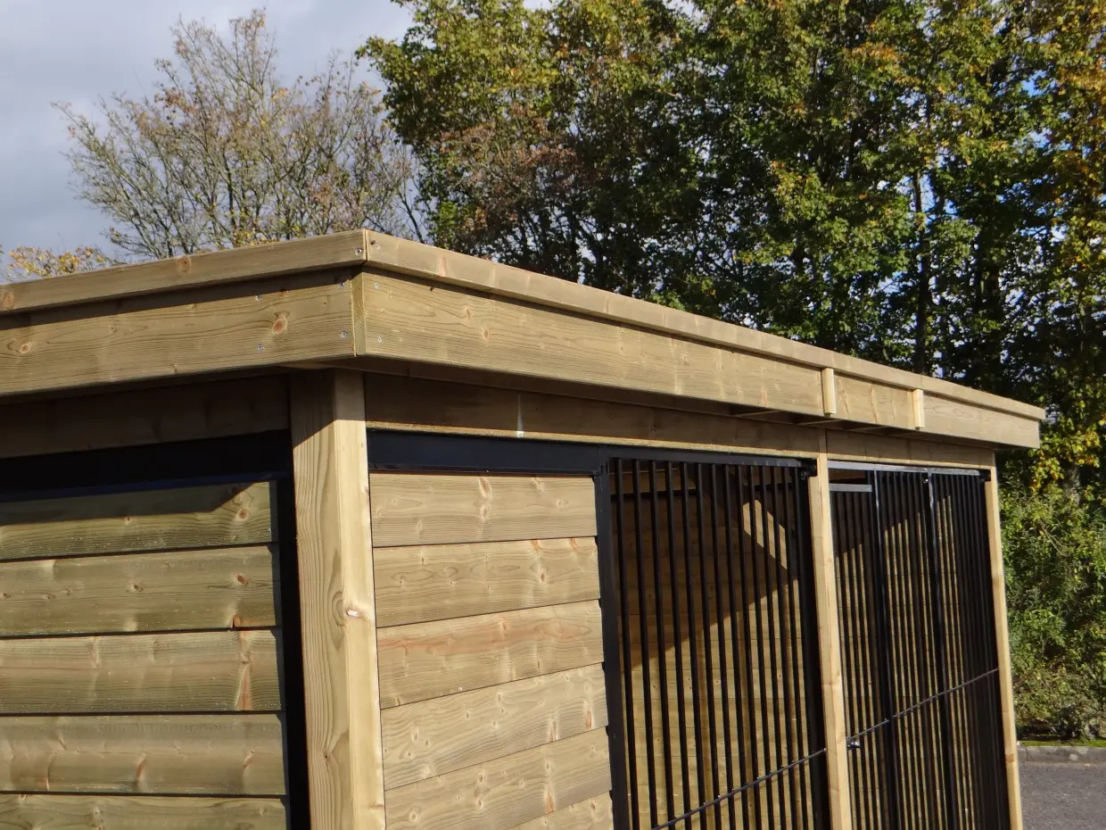 met houtkader, geïsoleerd nachthok en Luxe daksysteem