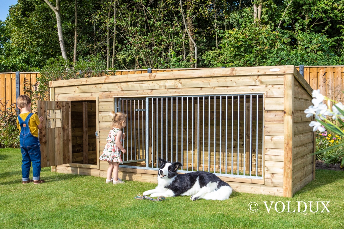 De kennel is handmatig geproduceerd met het gebruik van hoogwaardige materialen. Dit maakt deze hondenkennel niet alleen duurzaam maar ook onderhoudsvrij. De hondenkennel heeft een totale (buiten) afmeting van 342x130x132cm en biedt hiermee een grote ruimte voor de buiten huisvesting van jouw hond. Hondenkennel Luna XL bestaat uit een kennelgedeelte én een ruim nachthok. Dit nachthok beschikt over een toegangsdeur aan de voorzijde welke voorzien is van plexiglas. Dit zorgt ervoor dat er altijd goede toegang is tot het nachtverblijf. Het nachthok is gemaakt van geïmpregneerde balken bewerkt met geïmpregneerd rabat, dit zorgt ervoor dat het verblijf niet alleen sterk is maar óók onderhoudsvrij. Het nachthok heeft een open directe doorloop voor de hond, deze kan zelf eenvoudig de kennel inlopen vanuit het nachthok. De hondenkennel heeft een groot kennelpaneel aan de voorzijde welke zorgt voor veel lichtinval in de kennel. Het kennelpaneel beschikt over een deur zodat je ook eenvoudig via de kennel het verblijf kunt betreden. Het volledige dak van de kennel is voorzien van dakleer, wat zorgt voor de meest ideale afwatering op het verblijf voor jouw hond. Deze grote hondenkennel voor buiten is een comfortabele, veilige én fijne plek voor jouw viervoeter