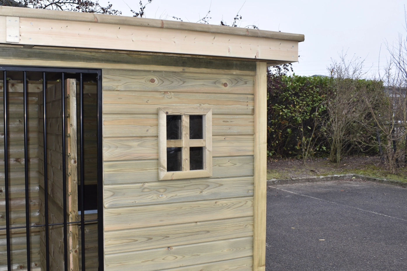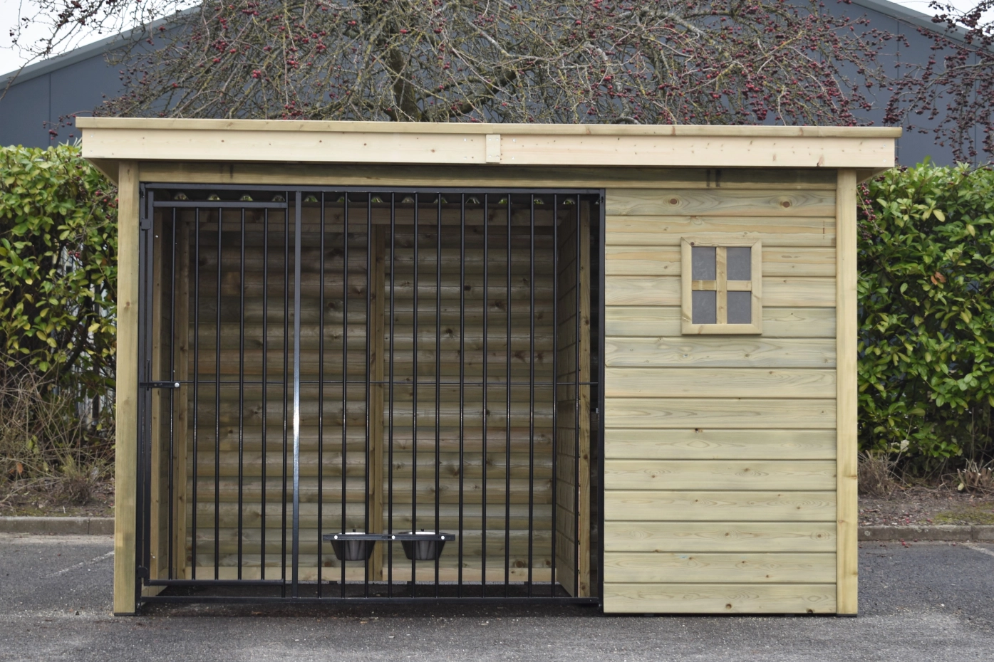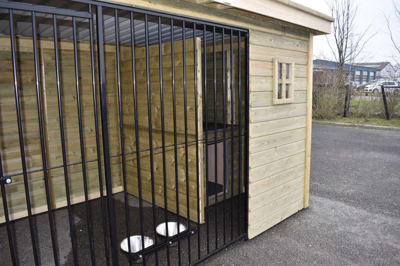 - De houten wanden zorgen voor beschutting tegen wind, neerslag en zon. Hierdoor ontstaat een beter klimaat in de kennel, het hele jaar door.