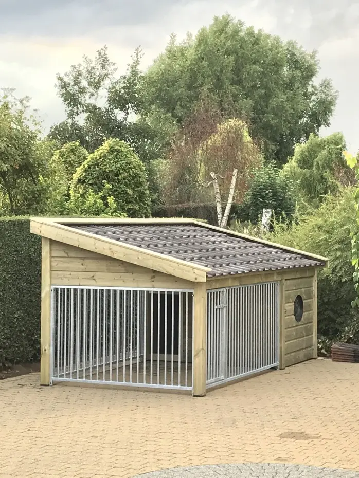 - Met keramische dakpannen: om het hondenhok extra charme te geven worden 2e hands restauratie dakpannen gebruikt