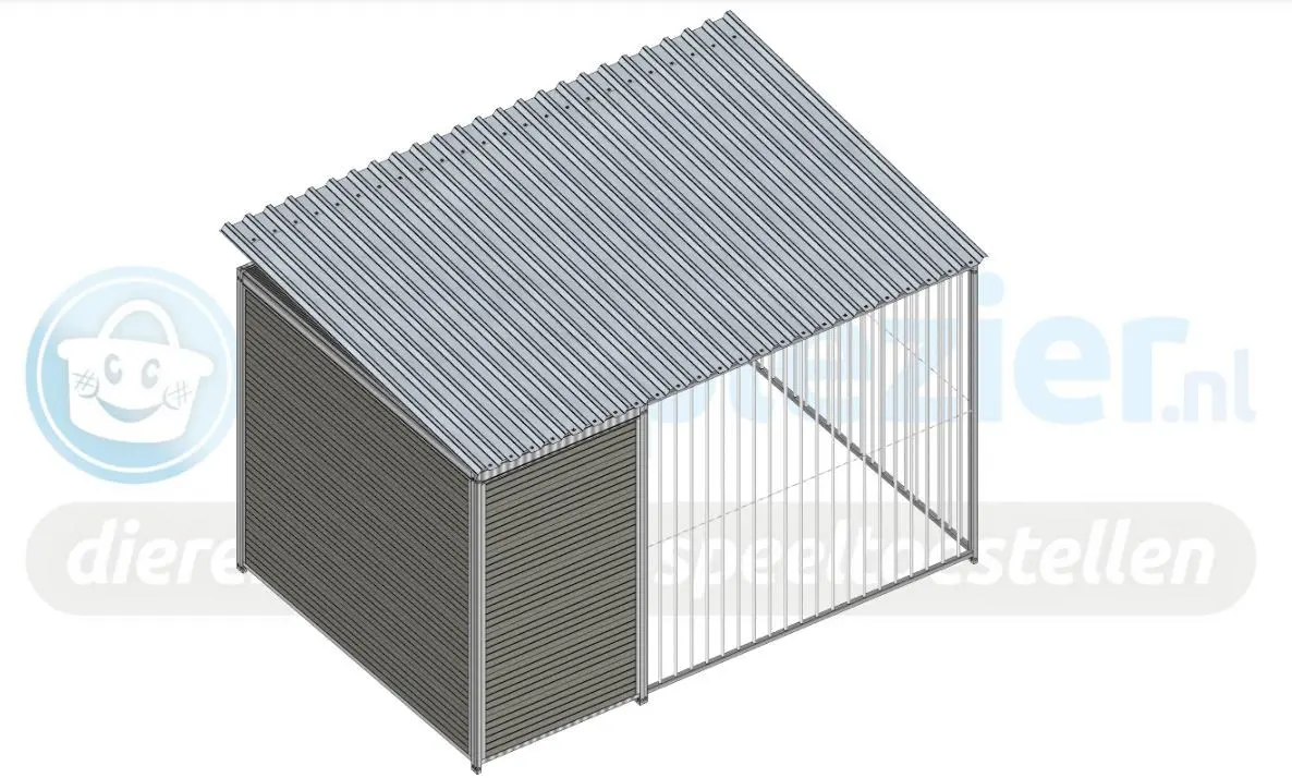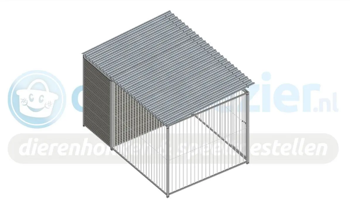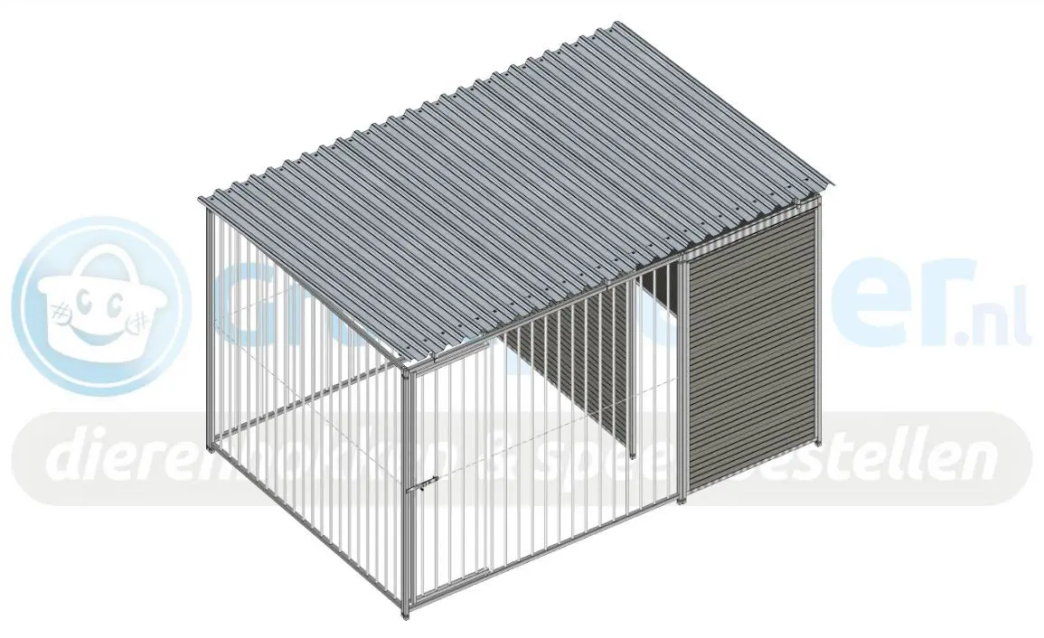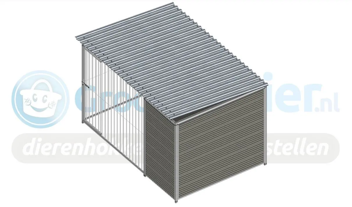 Deze stevige gegalvaniseerde hondenkennel is een optimaal buitenverblijf voor uw hond. Voorzien van een dak, en 3 dichte WPC wanden. De hondenkennel is 3 x 2 meter en binnenin voorzien van een fijn tochtschot voor een beschutte plaats voor uw hond. Deze kennel is normaal gesproken direct uit voorraad leverbaar....!