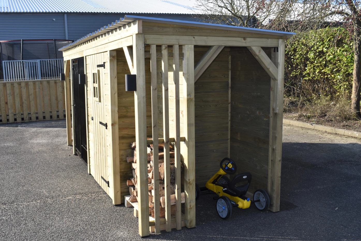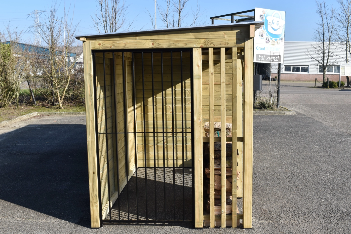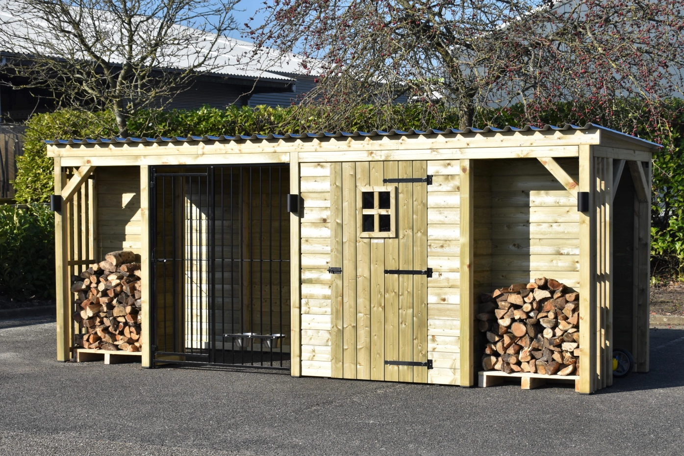 Hondenkennel Modul COMBI met opberghok, afdak en 2 haardhout vakken