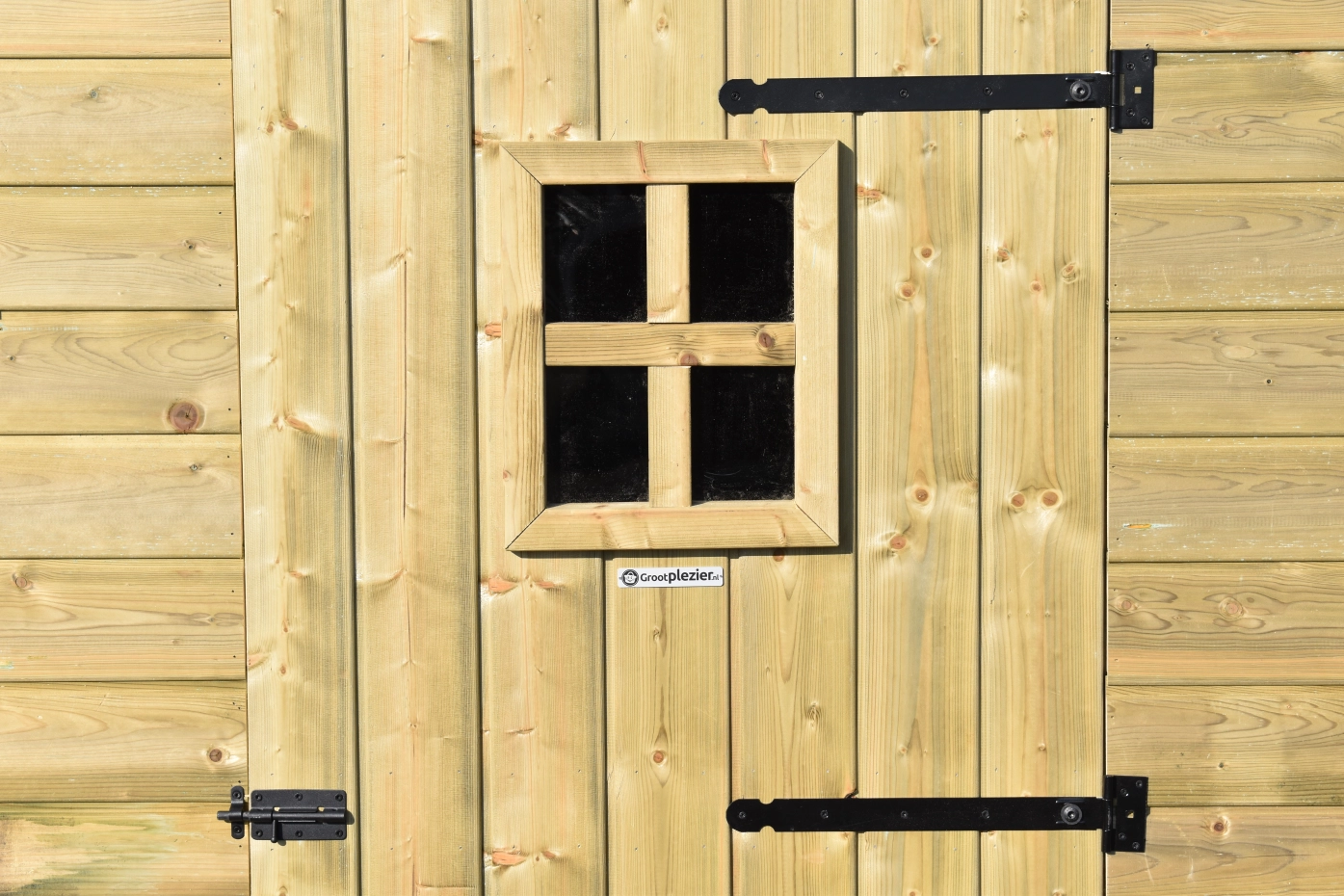 - 18mm dikke rabatdelen van geïmpregneerd vurenhout, die niet meer behandeld hoeven te worden