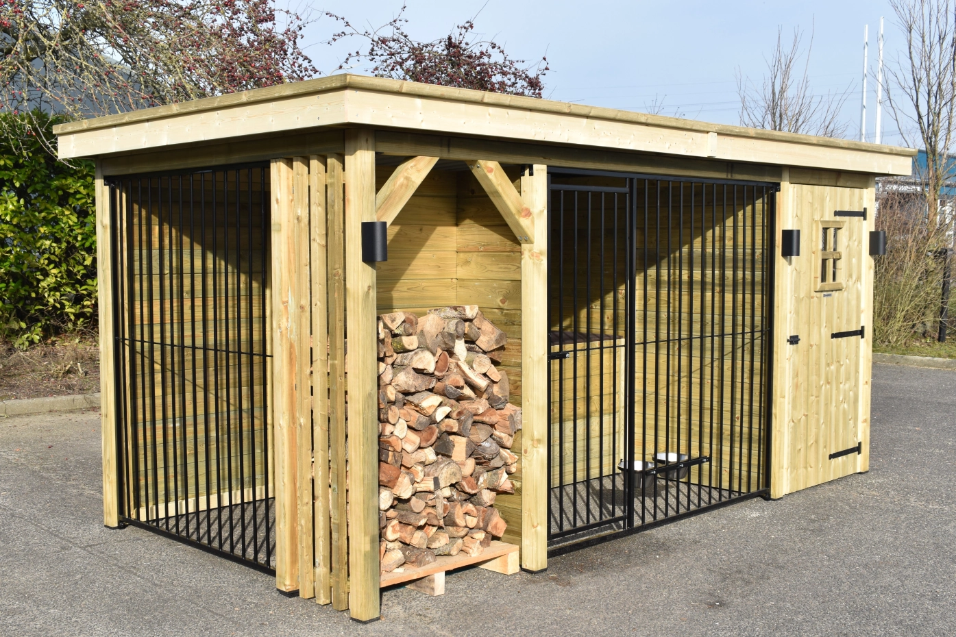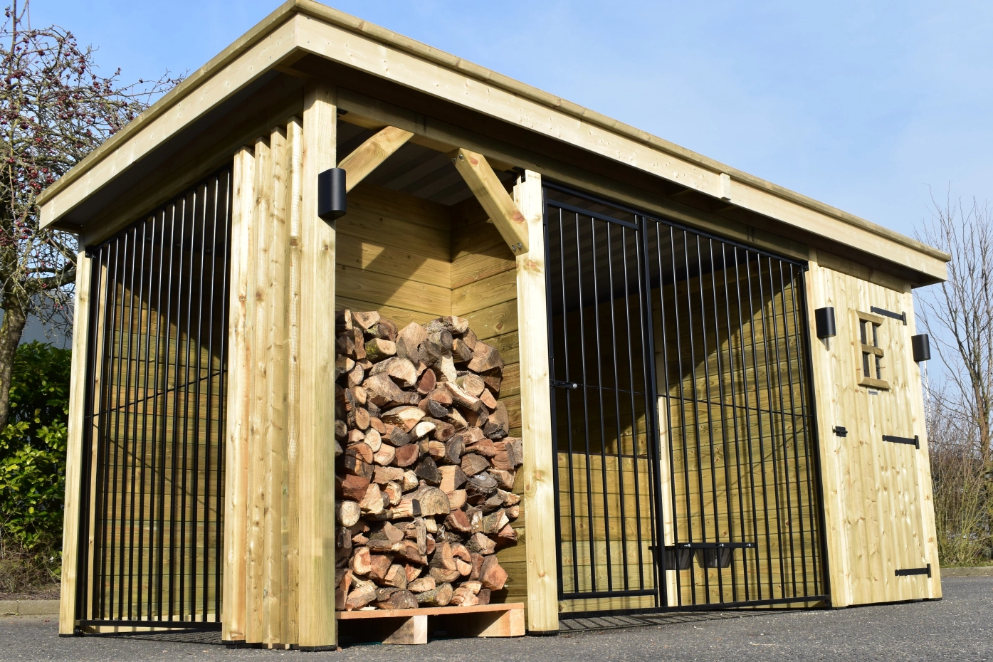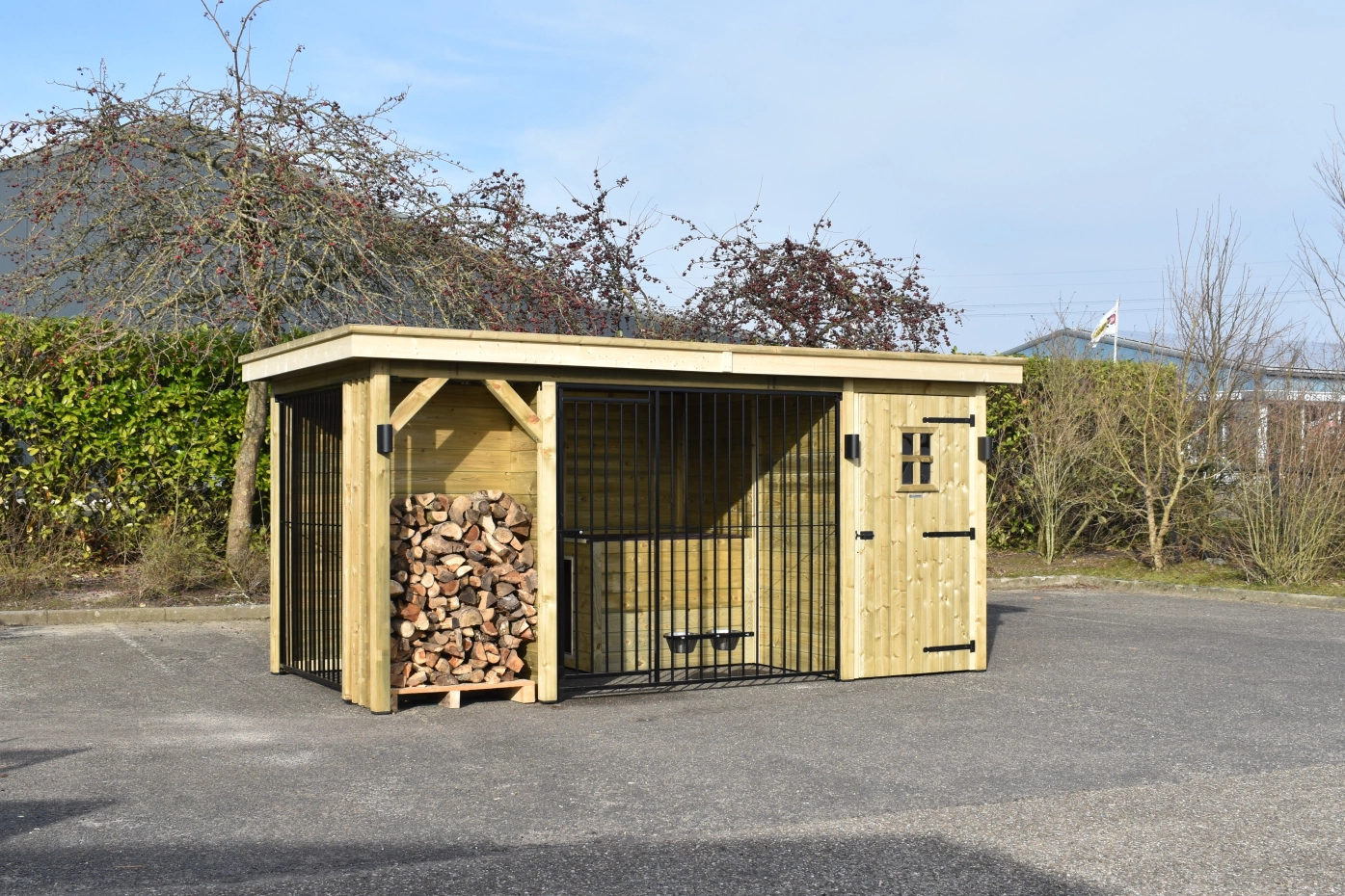 Hondenkennel Modul COMBI met opberghok, nachthok en haardhout vak