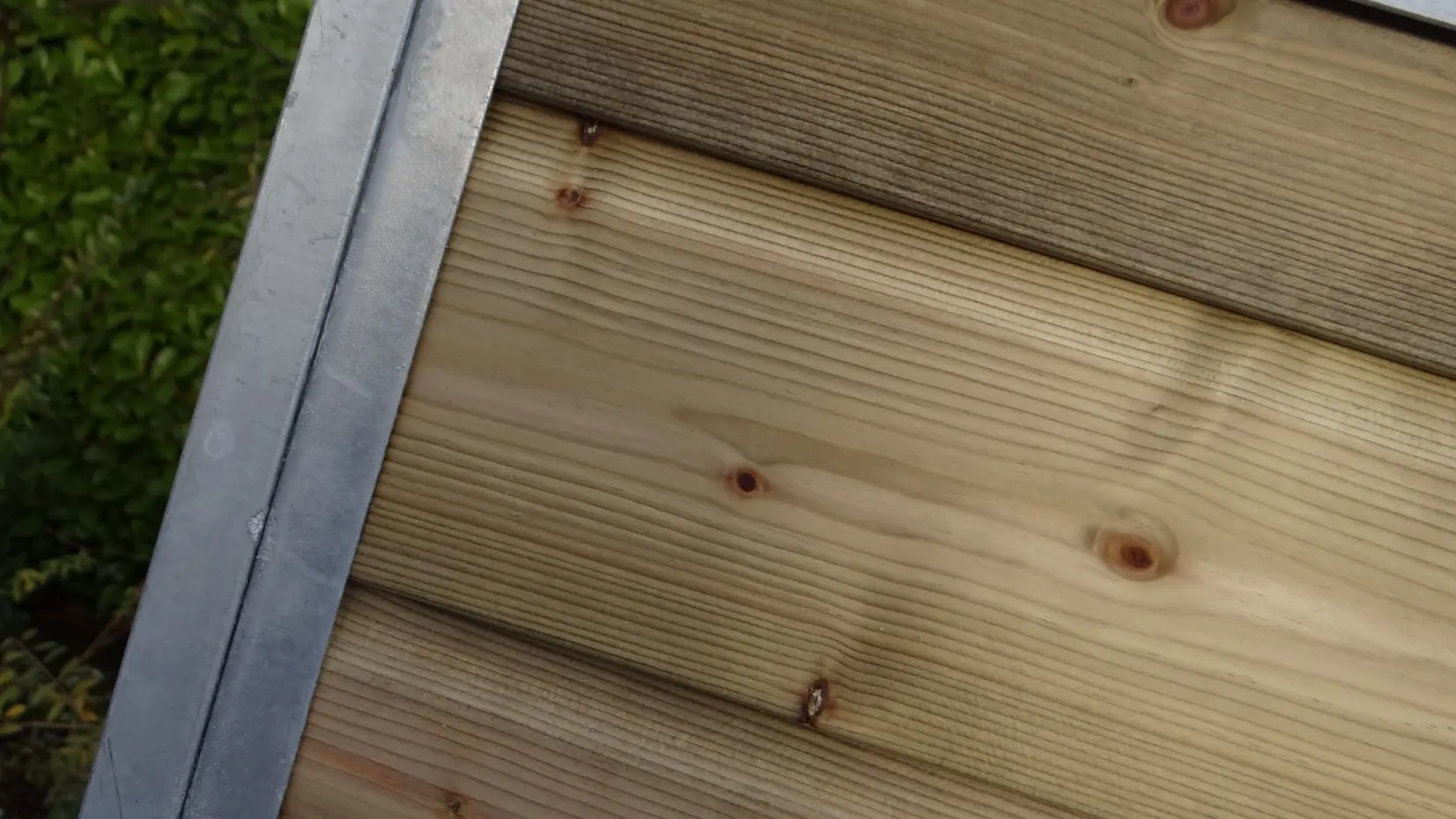 - 18mm dikke rabatdelen van geïmpregneerd vurenhout, die niet meer behandeld hoeven te worden