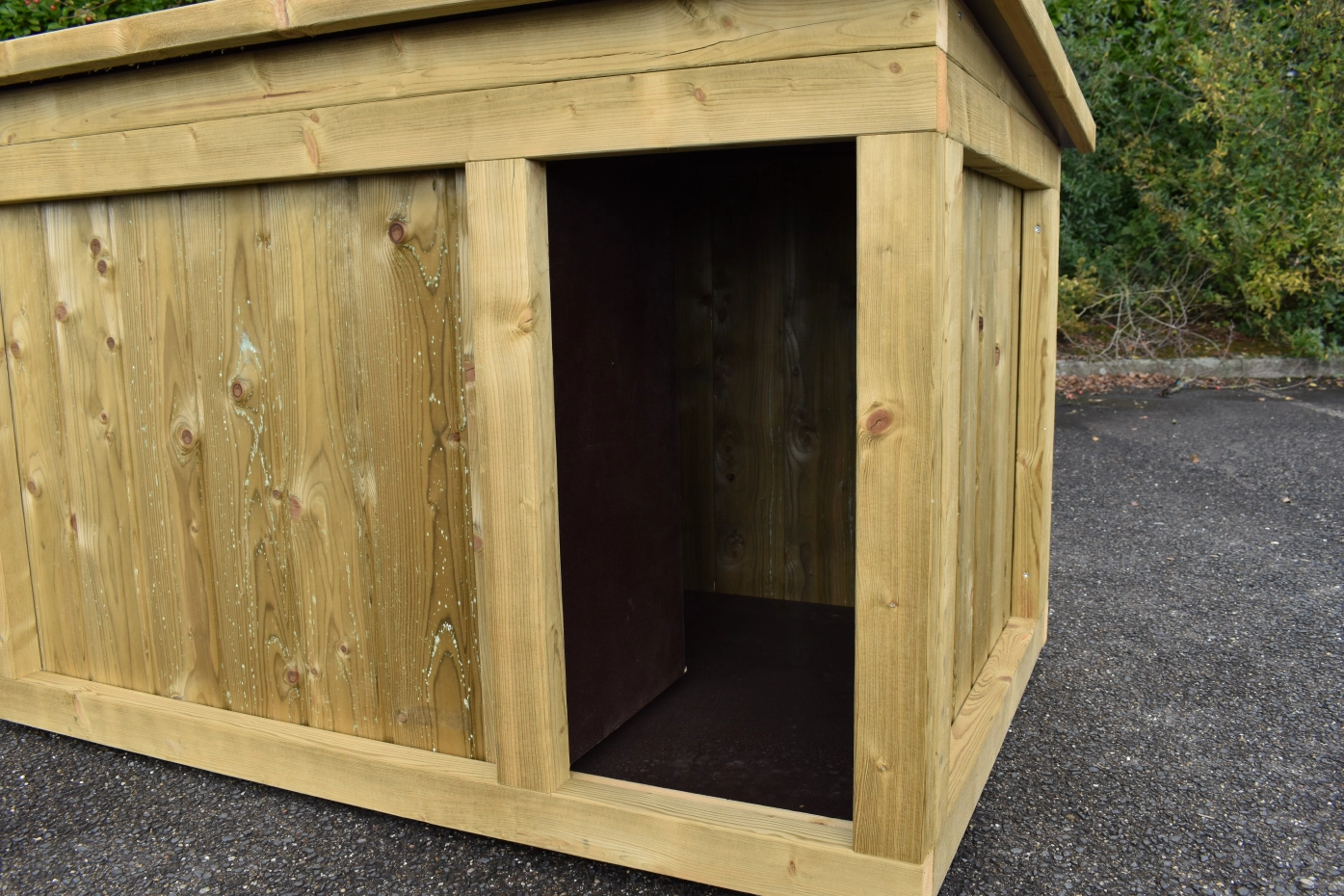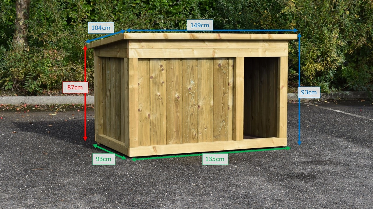 Hondenhok Block is gemaakt van geïmpregneerd vurenhout. Het is erg stevig gebouwd en dus goed geschikt voor grote honden zoals Herdershond, Retriever, Rottweiler, Boxer, Sennen. Met de breedte van 149cm past het hondenhok ook precies in een hondenkennel van 150cm diep.