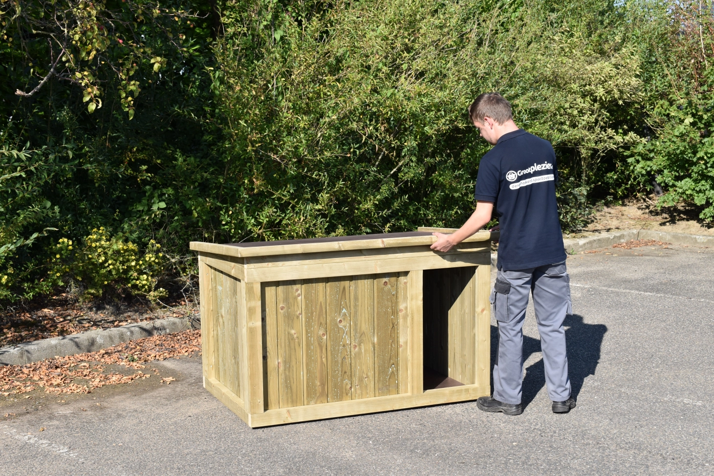 - Het hok wordt als bouwpakket geleverd met compleet voorgemonteerde wanden. Deze wanden zijn eenvoudig aan elkaar te schroeven. Gaten hiervoor zijn voorgeboord en schroeven en bitjes worden meegeleverd.