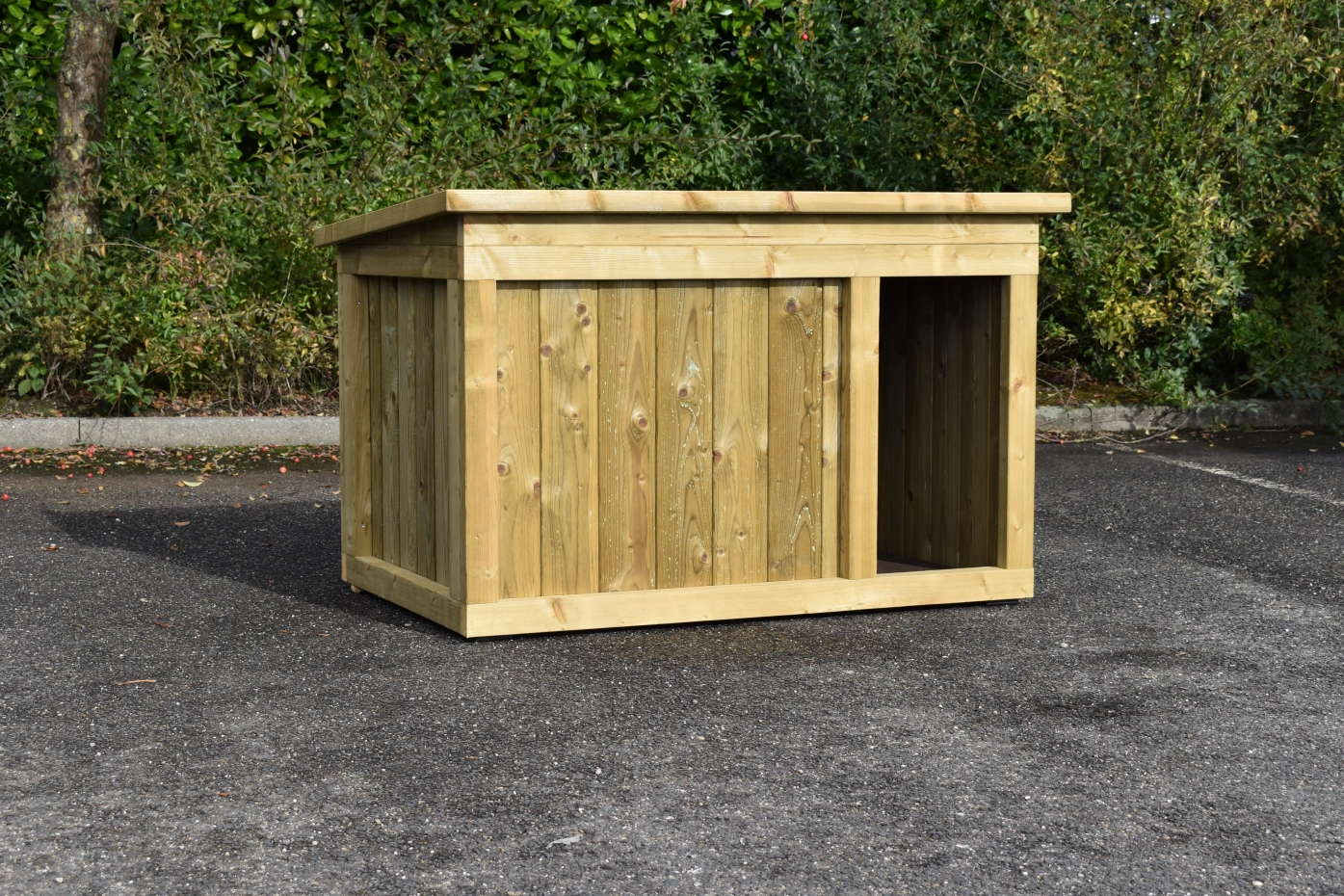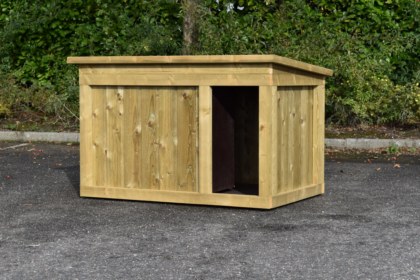 Hondenhok Block is gemaakt van geïmpregneerd vurenhout en voorzien van isolatie. Het is erg stevig gebouwd en dus goed geschikt voor grote honden zoals Herdershond, Retriever, Rottweiler, Boxer, Sennen. Met de breedte van 149cm past het hondenhok ook precies in een hondenkennel van 150cm diep. Wanden, vloer en dak zijn voorzien van 3 cm isolatiemateriaal.