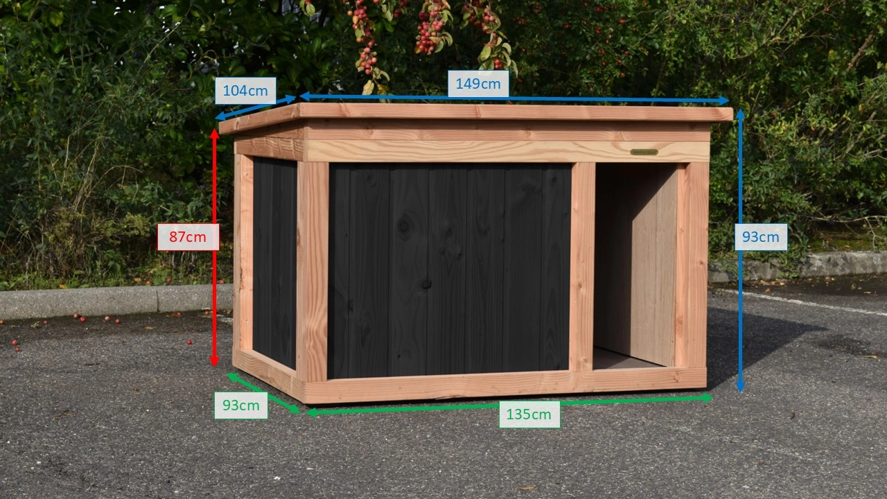 Hondenhok Block Large geïsoleerd is een kwaliteitshok voorzien van isolatie. Het is dan ook zomer en winter geschikt voor middelgrote tot grote honden zoals Herdershond, Retriever, Rottweiler, Boxer, Sennenhond. Omdat het hondenhok 149cm breed is past het in honden-kennels van 150cm diep. Wanden, vloer en dak zijn voorzien van 3cm isolatiemateriaal.