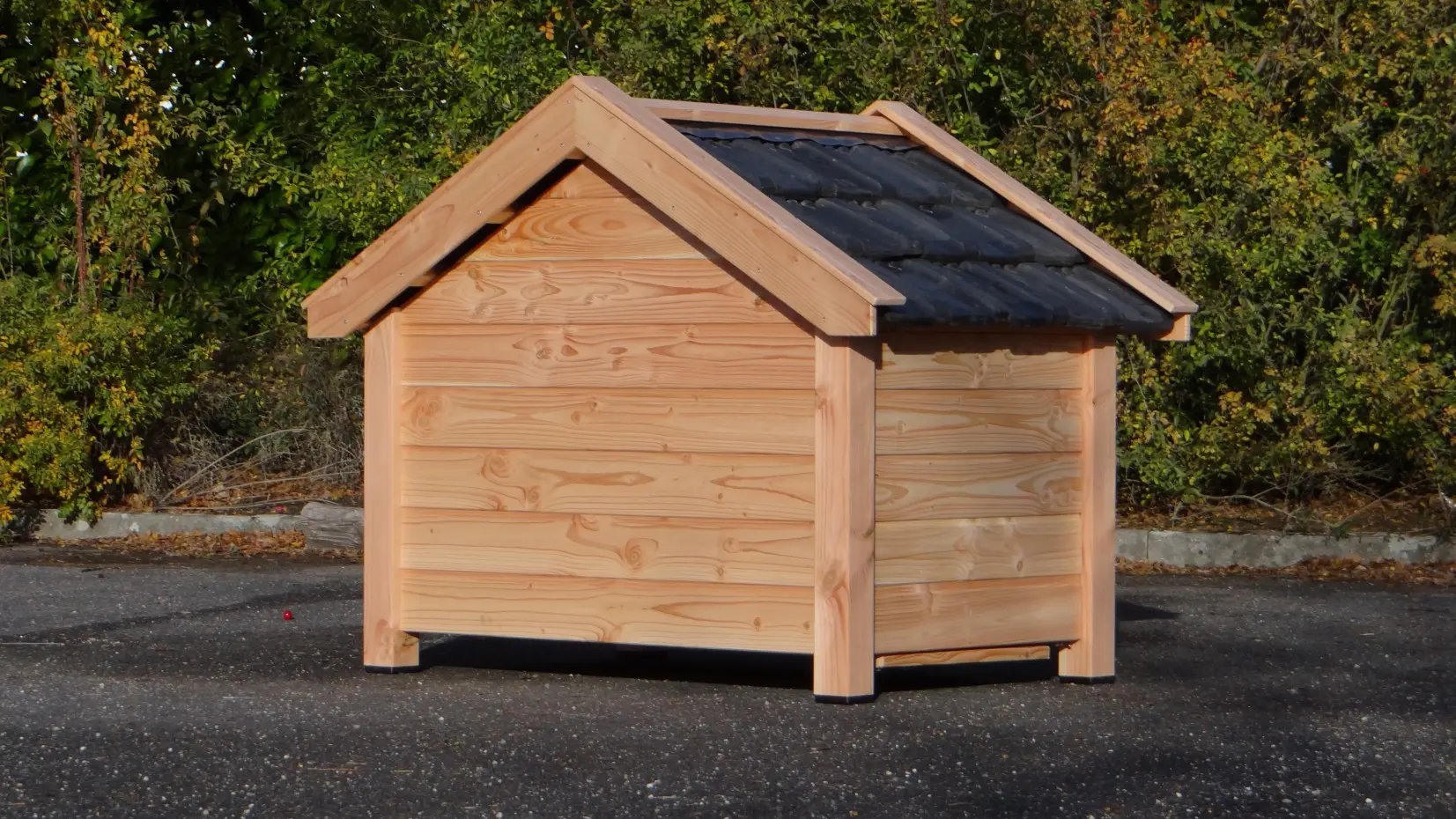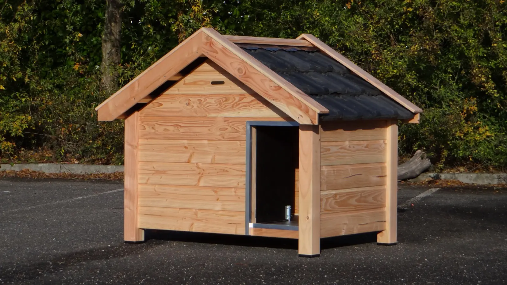 Hondenhok Reno Douglas is één van de mooiste hondenhokken in ons assortiment. Gemaakt van duurzaam douglashout en afgewerkt met echte dakpannen. De stevige bodem is van betonplex met hexagrip. De uitgekiende details maken dit hondenhok helemaal af.