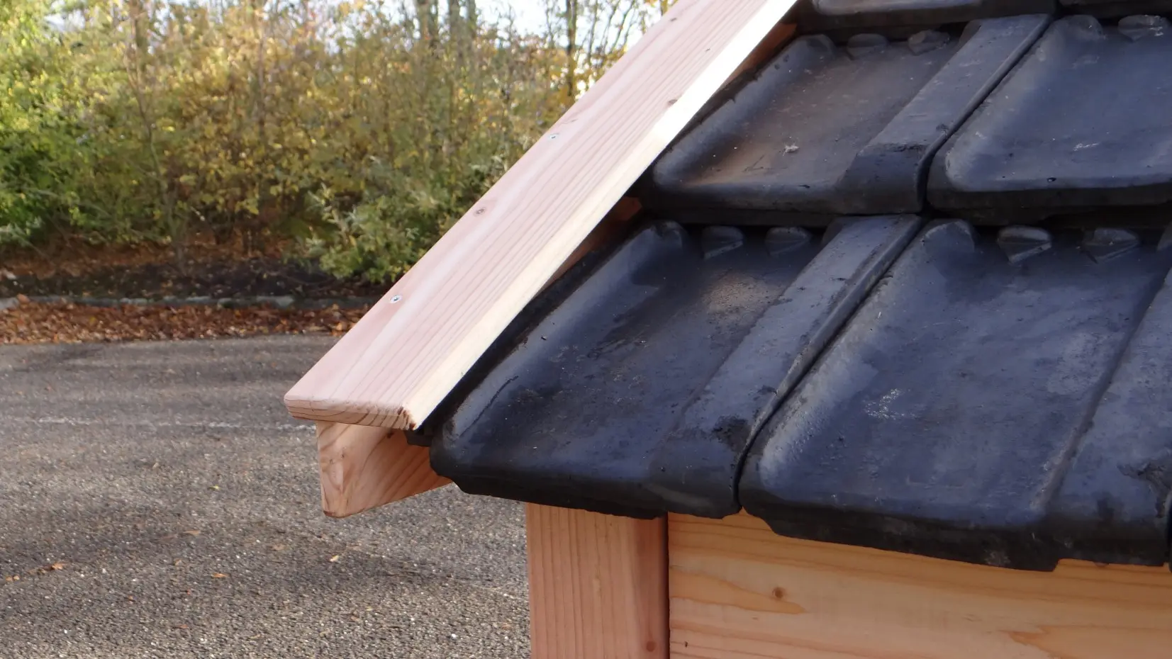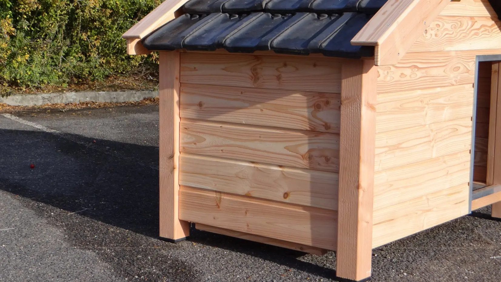 - Met keramische dakpannen: om het hondenhok extra charme te geven worden 2e hands restauratie dakpannen gebruikt
