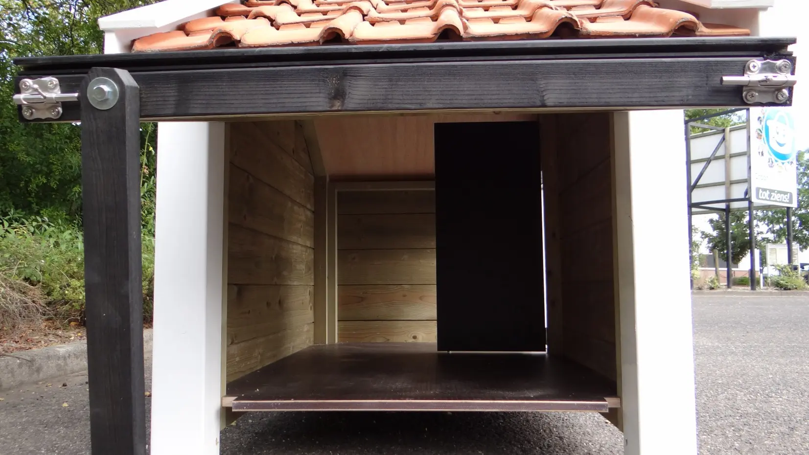 - Met keramische dakpannen: om het hondenhok extra charme te geven worden 2e hands restauratie dakpannen gebruikt