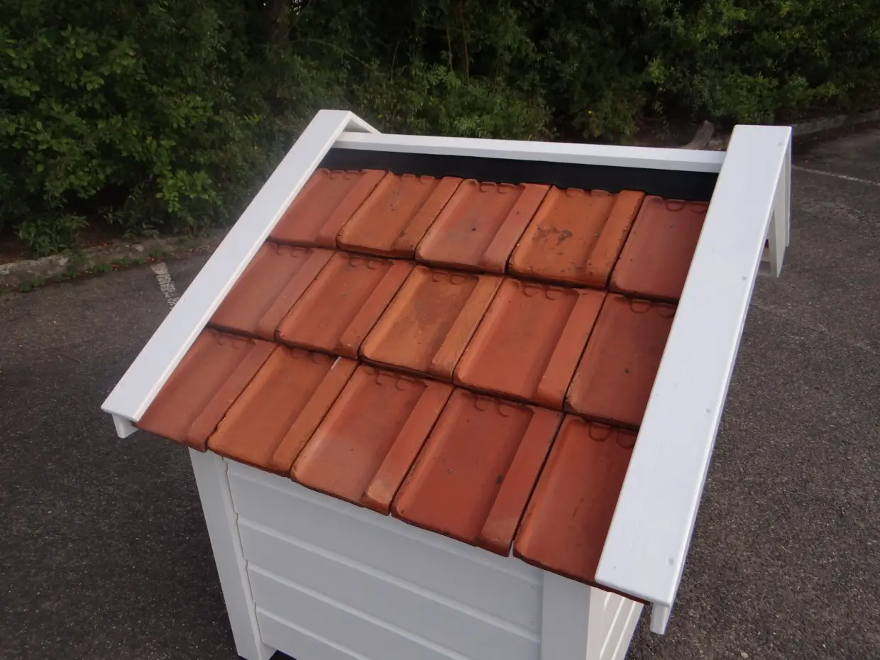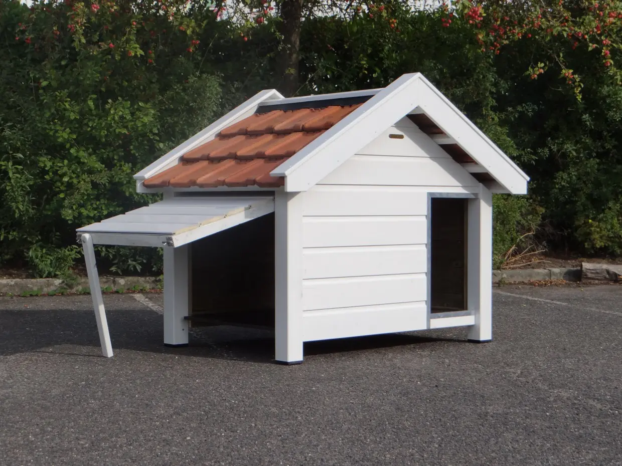 - Met keramische dakpannen: om het hondenhok extra charme te geven worden 2e hands restauratie dakpannen gebruikt