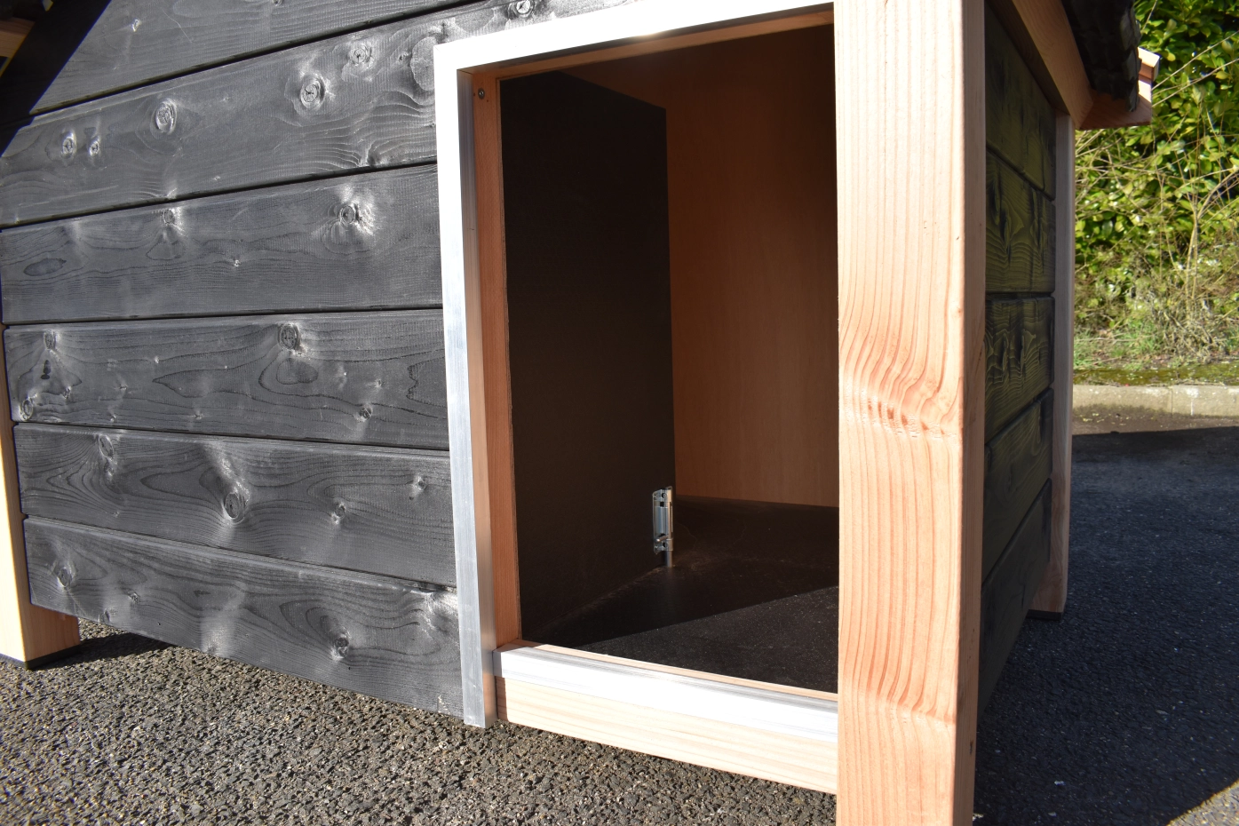 - Het hok is voorzien van een zijluik, waardoor het makkelijk schoon te maken is en het 's zomers ook opengezet kan worden als het erg warm is.