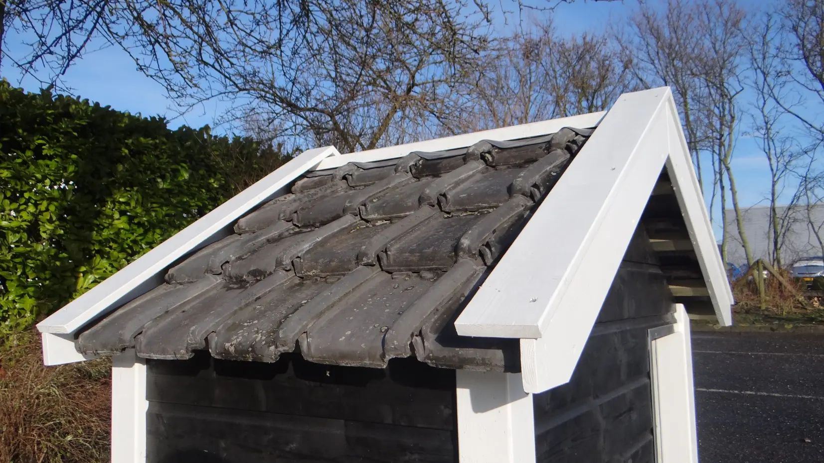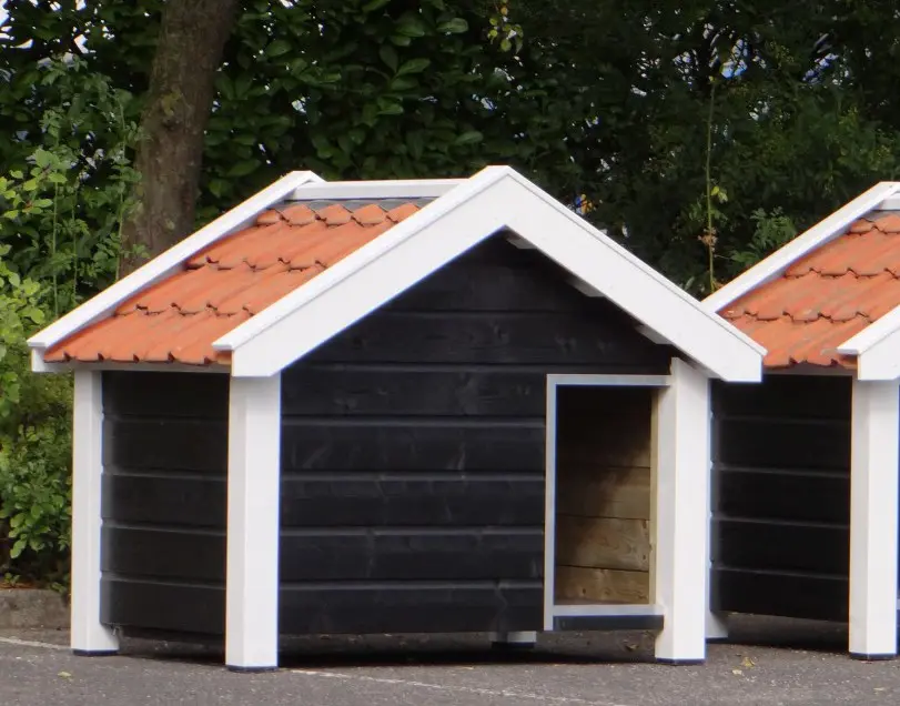 - Met keramische dakpannen: om het hondenhok extra charme te geven worden 2e hands restauratie dakpannen gebruikt