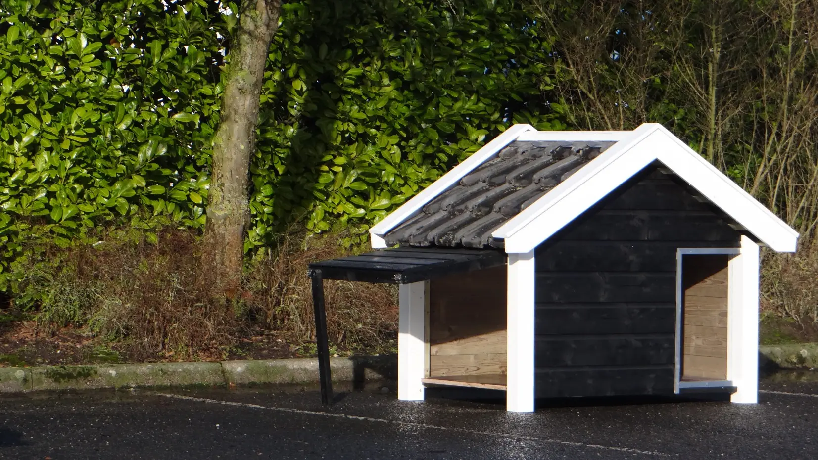 - Blaft niet, maar bijt wel: kennel met afgesloten dak