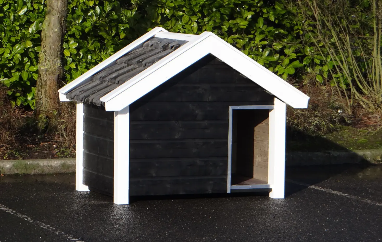 Hondenhok Reno Zwart/Wit geïsoleerd is een schitterend en oerdegelijk hondenhok. Het hondenhok is gemaakt van geïmpregneerd vurenhout in combinatie met betonplex en echte dakpannen. Helemaal gemaakt in stijl van de Zeeuwse boeren schuren. Zeer handig en comfortabel! De geïsoleerde wanden zijn maar liefst 7 cm dik. Buitenwerkse afmetingen: 160x106x123cm (BxDxH). Top kwaliteit!