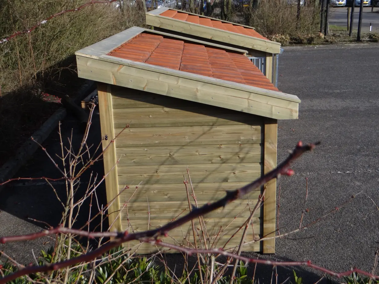 - 18mm dikke rabatdelen van geïmpregneerd vurenhout, die niet meer behandeld hoeven te worden