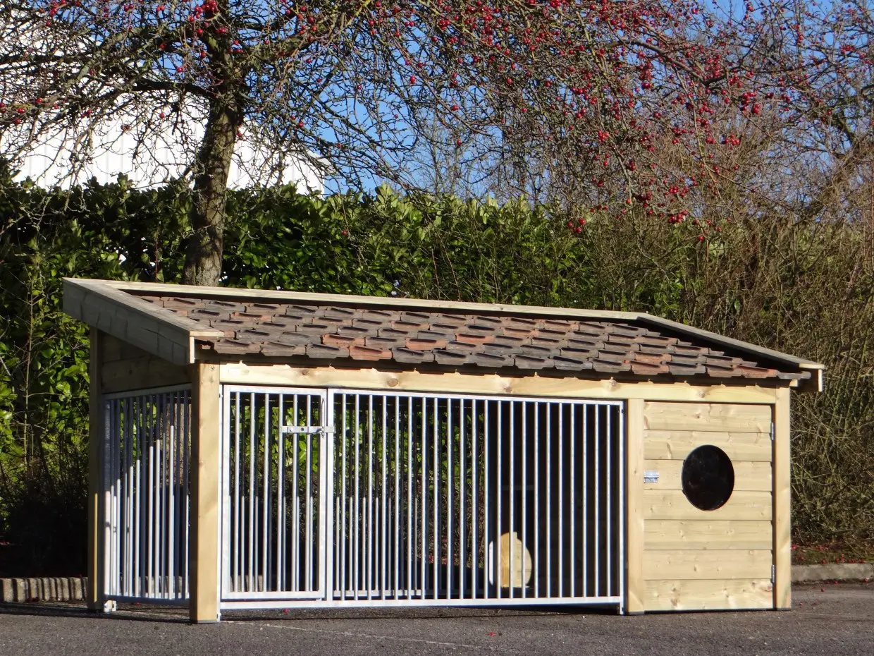 - Met keramische dakpannen: om het hondenhok extra charme te geven worden 2e hands restauratie dakpannen gebruikt