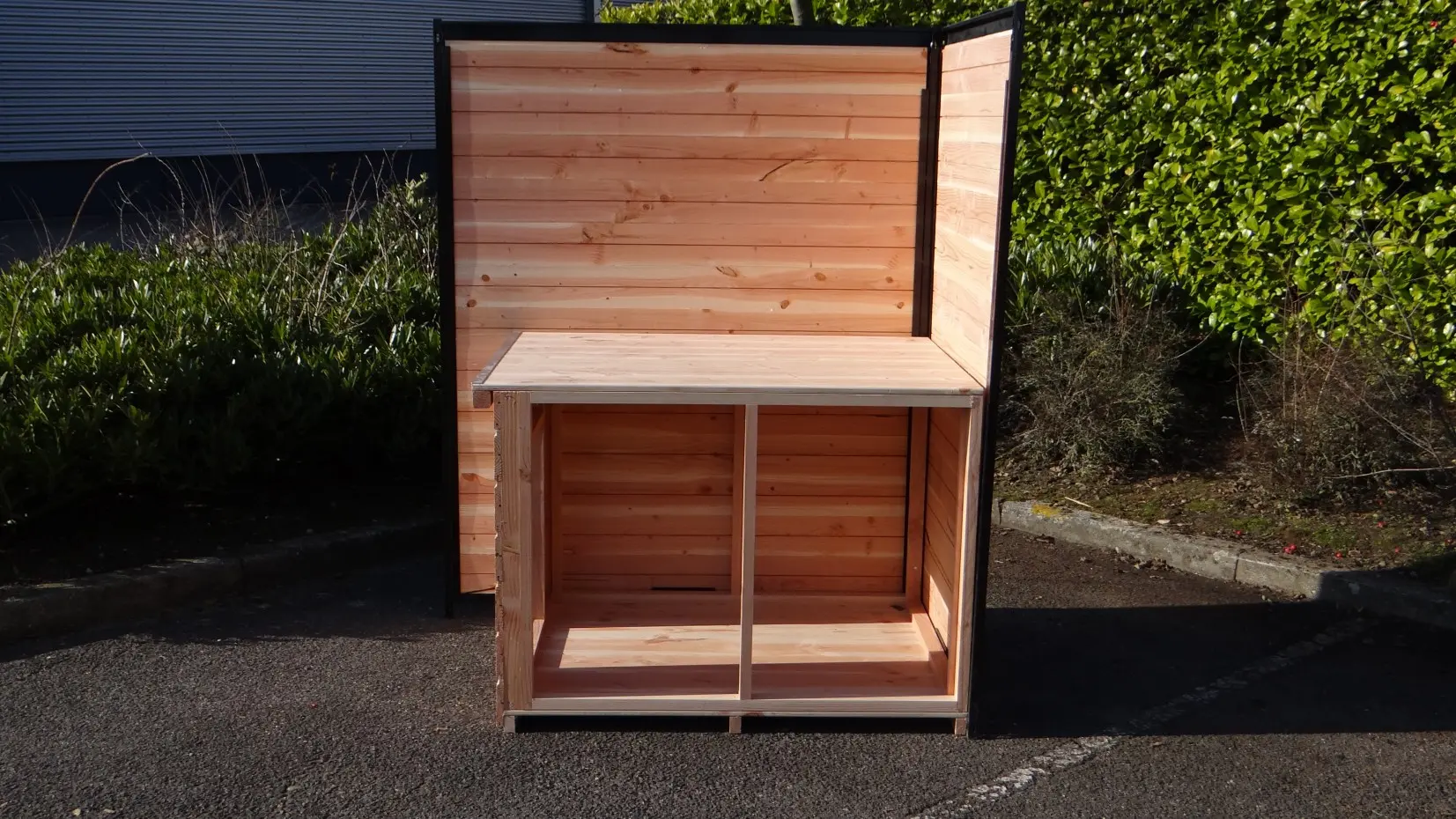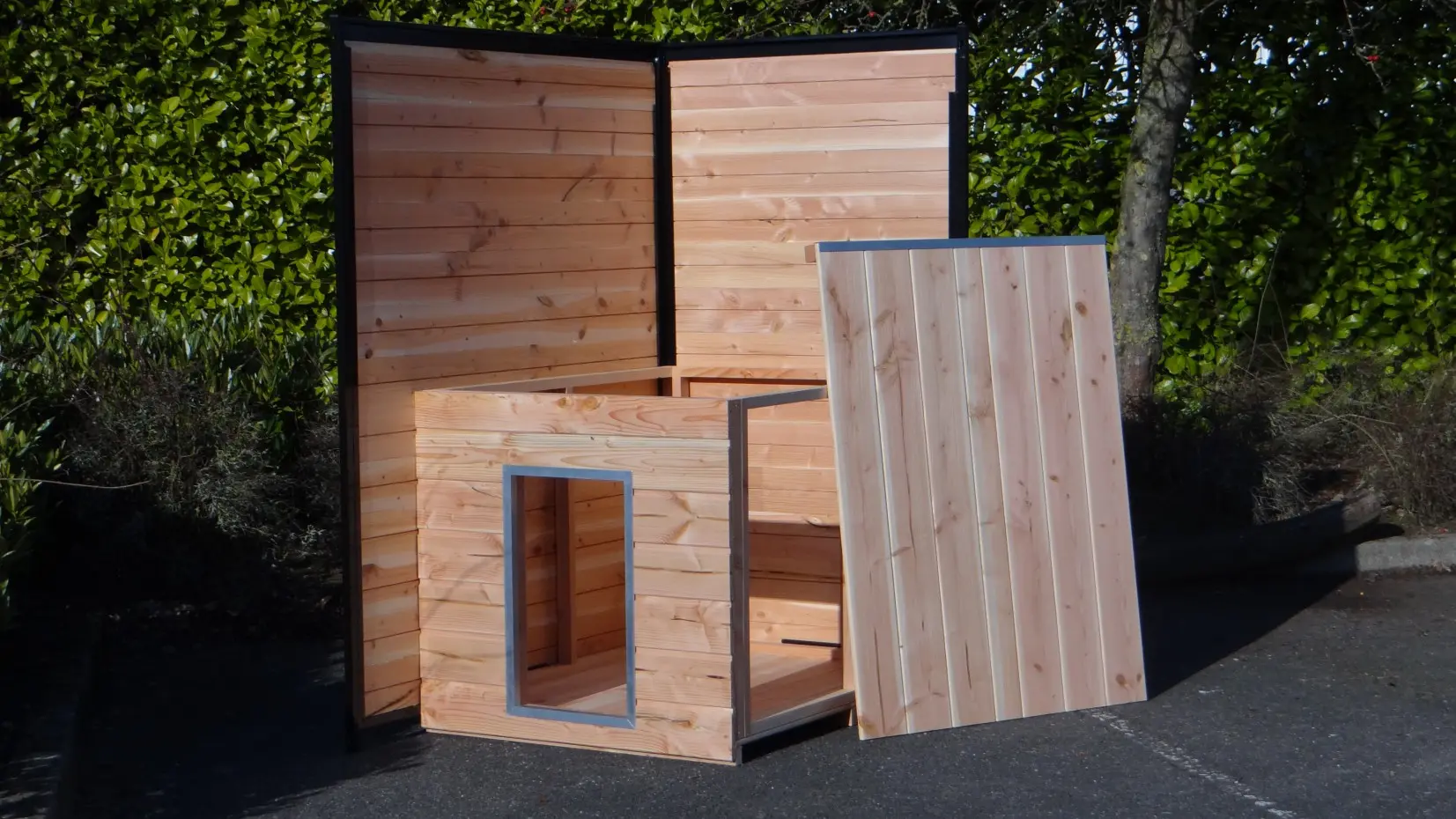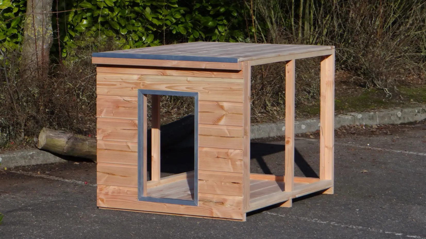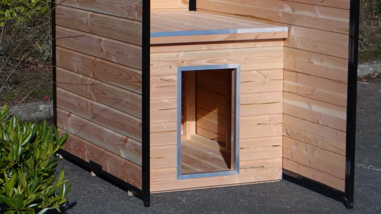 Hondenhok Simply is de ideale oplossing om een hok in een hondenkennel te maken. Dit eenvoudige nachthok bestaat slechts uit een bodem, een dak en een voorkant. Tussen de houten wanden van hondenkennel Fix, Forz of Ferm staat het stevig en geeft de nodige beschutting tegen tocht en kou. Natuurlijk wordt het wel zo geleverd dat het op zichzelf al stevig is.