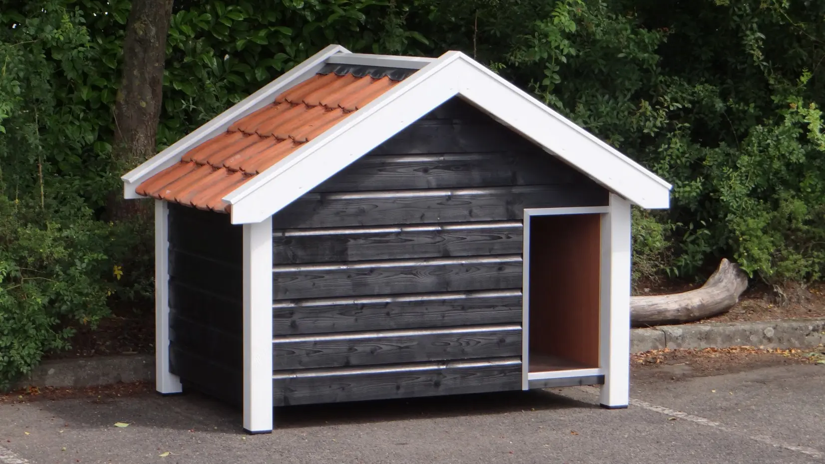 - Met keramische dakpannen: om het hondenhok extra charme te geven worden 2e hands restauratie dakpannen gebruikt