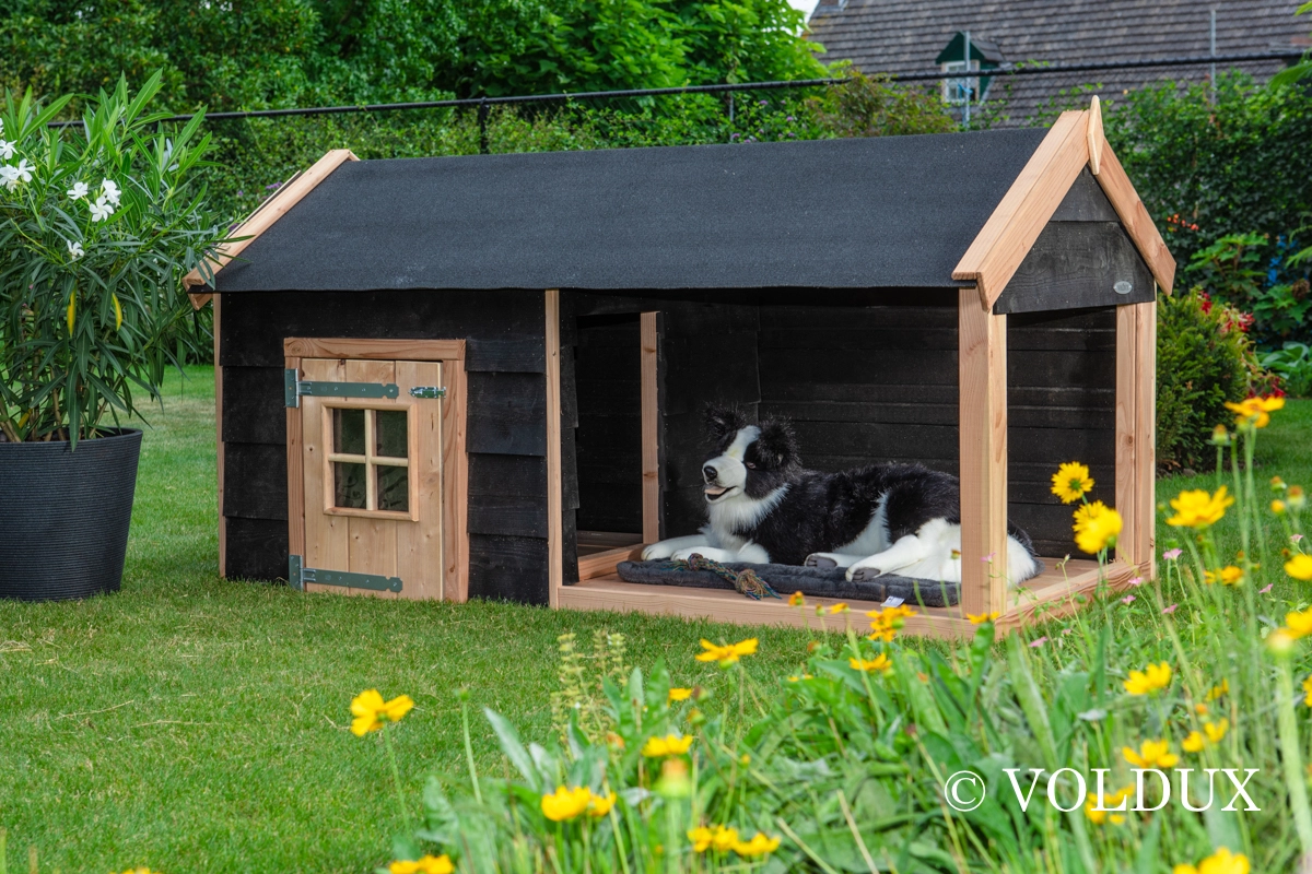 Dit prachtige hondenhok is een aanwinst voor jouw viervoeter. Het hok is opgebouwd uit hoogwaardige materialen welke zonder onderhoud een levensduur bieden van 10 tot 15 jaar. Het stevige Douglas frame van het hok geeft een stijlvolle uitstraling in combinatie met de zwarte potdeksel delen waarmee het hondenhok is afgewerkt. Dit hondenhok biedt een grote binnenruimte én een ruim opgezette en overdekte veranda. Dit maakt het hondenhok ideaal voor zowel zomerdagen als de koudere winterdagen. Het nachthok is eenvoudig te bereiken via het deurtje aan de voorzijde, dit geeft ook een makkelijke toegang voor het schoonmaken van het hondenhok voor buiten. Het dak van Hondenhok Sven is voorzien van zwart dakleer wat zorgt voor een optimale afwatering. Dit hondenhok biedt jouw viervoeter een veilige, comfortabele én goed beschermde plek in de tuin.