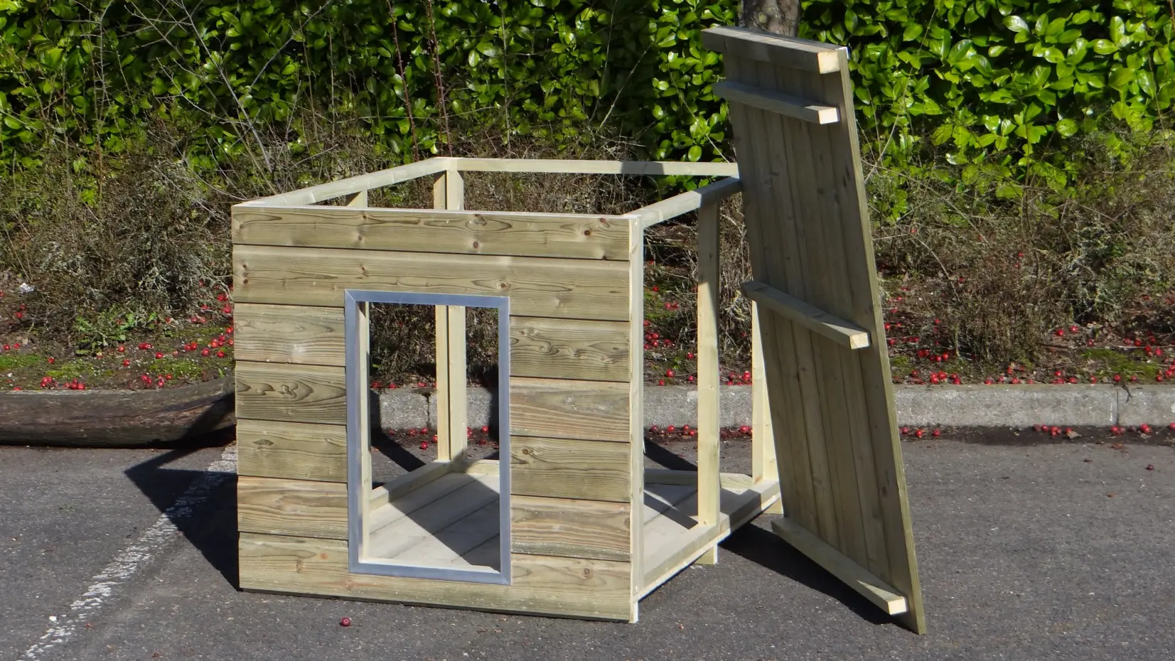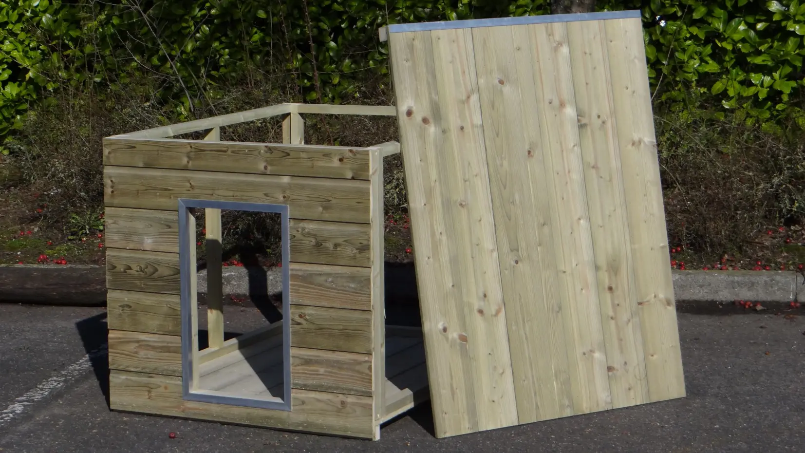 Hondenhok Simply is de ideale oplossing om een hok in een hondenkennel te maken. Dit eenvoudige nachthok bestaat uit slechts een frame met bodem, dak en voorkant. Hondenhok Simply is daarom alleen geschikt om tussen de houten wanden van hondenkennel Fix, Forz of Ferm te plaatsen. Dit hondenhok is niet geschikt al vrijstaand hok! Hondenhok Simply is alleen compleet tussen de wanden van een hondenkennel.