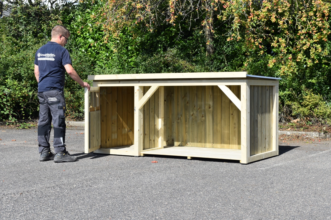 - 18mm dikke rabatdelen van geïmpregneerd vurenhout, die niet meer behandeld hoeven te worden