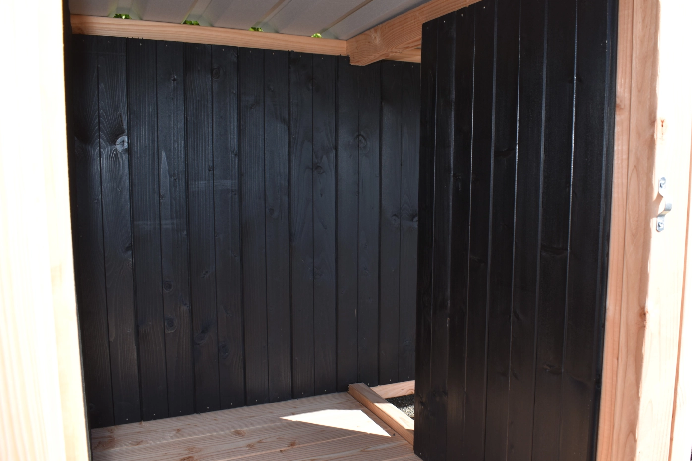 • 18mm dikke rabatdelen van geïmpregneerd vurenhout, die niet meer behandeld hoeven te worden