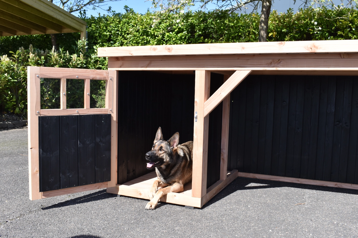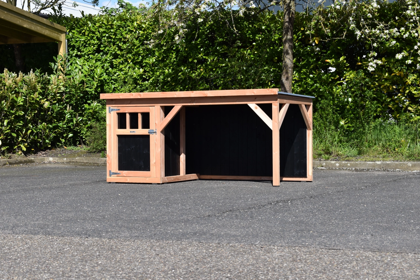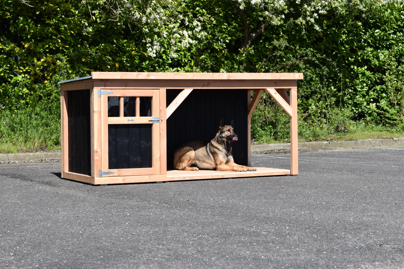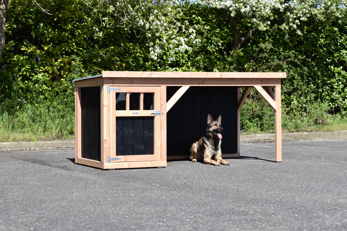 Hondenhok Isa 2 met overdekte veranda is een leuk en compact hondenhok voor grote en middelgrote honden. Het nachthok is voorzien van een ruime deur en een houten bodem. In de veranda kan de hond lekker droog buiten liggen. U kunt ook kiezen voor een vloer in de veranda. Omdat we het hok zelf maken en door het gebruik van top kwaliteit materialen, is het erg onderhoudsvrij.