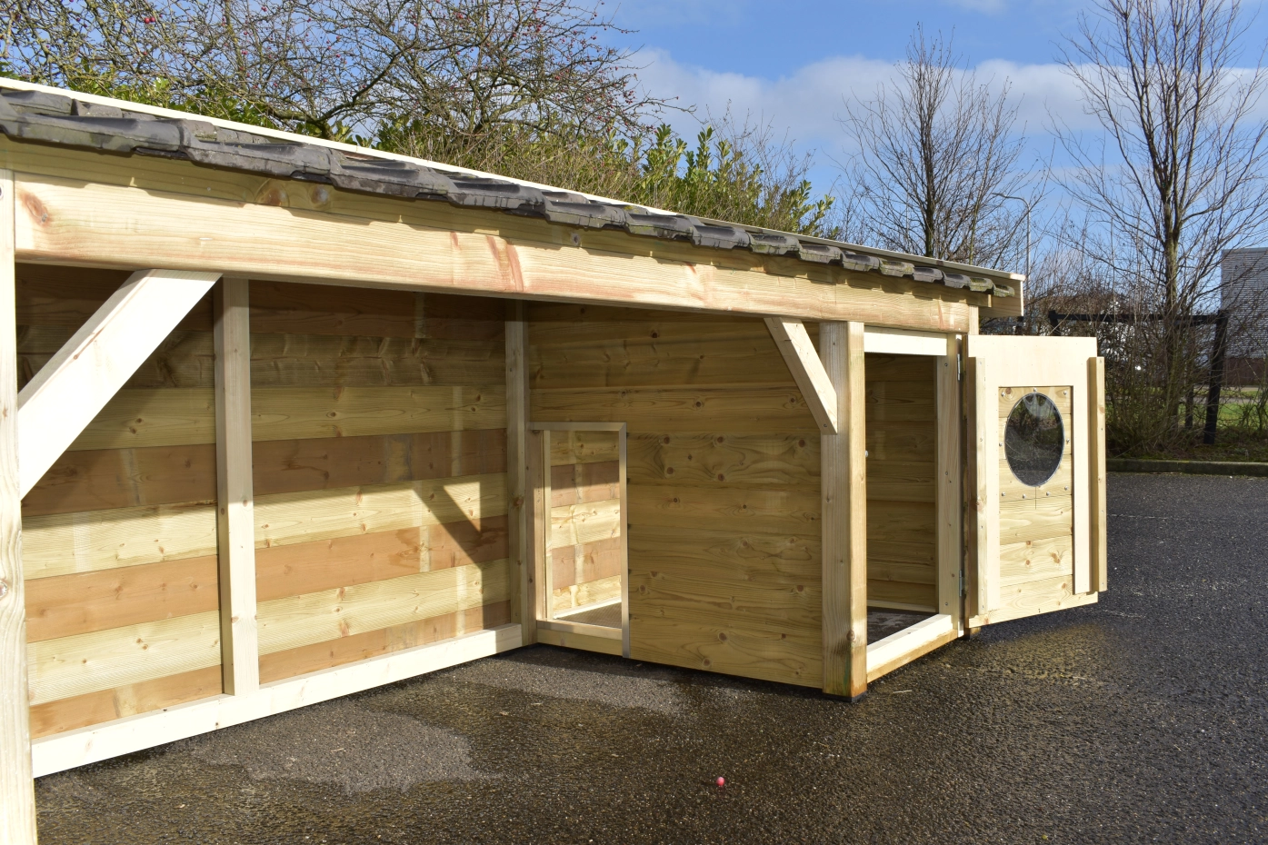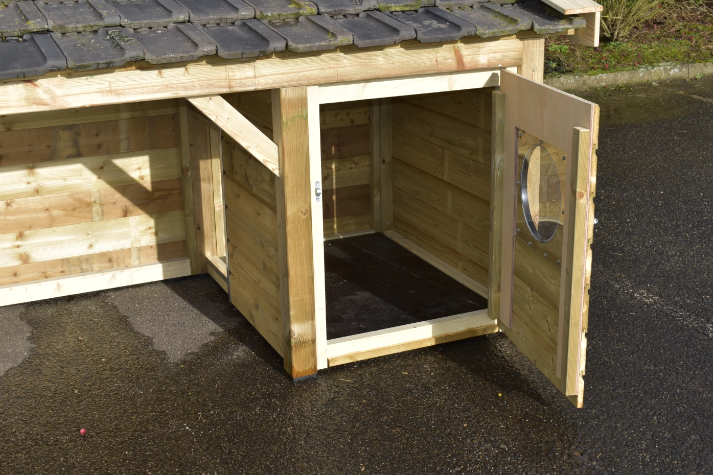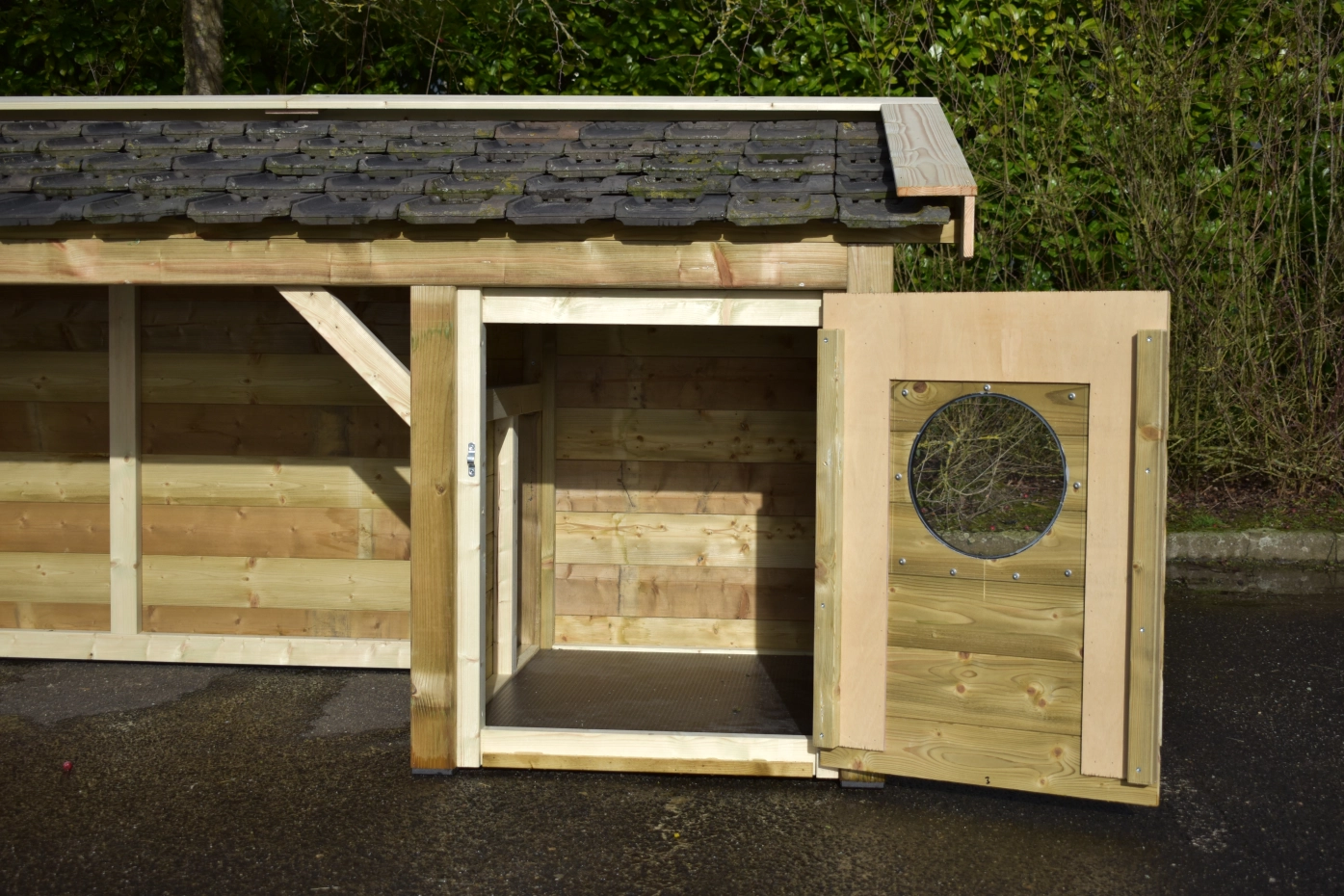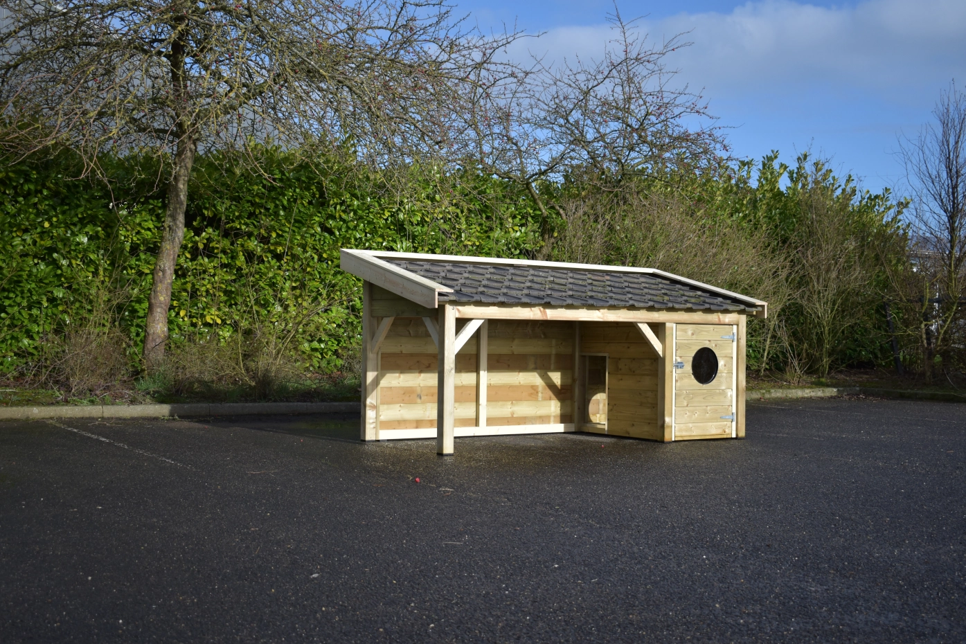 Schuilhok Rico is uitermate geschikt voor het huisvesten van kleinvee, zoals o.a. dwerggeitjes en minivarkentjes. Oók geschikt voor honden voor in een grote ren. Het stevige dierenhok heeft een ruim nachthok van ca. 75x100cm. De wanden en overstekken zijn gemaakt van verduurzaamd vurenhout, en de vloer van Beton-multiplex. Het karakteristieke plaatje is compleet gemaakt met authentieke gebruikte keramische dakpannen. Met dit top kwaliteit dierenverblijf geeft u uw dieren een prettig én prachtig onderkomen.